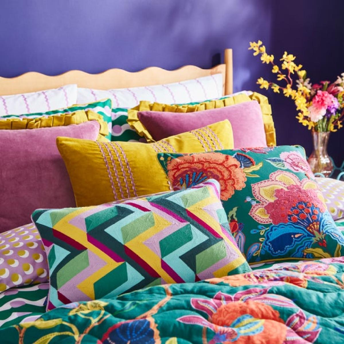 I really like this zig zag cushion for its bold geometric pattern and vibrant colours, which can instantly inject personality into a variety of interiors. It works particularly well in eclectic, modern, or retro-inspired spaces, but can also add a lively touch to more neutral schemes. Pairing it with solid-coloured upholstery or plain throws allows the pattern to really stand out, making it a versatile accent piece. Practical styling tips include mixing it with other textured cushions for visual interest or using it as a focal point on a plain sofa or bed. Its lively design is perfect for creating a fresh, contemporary look without overwhelming the space.