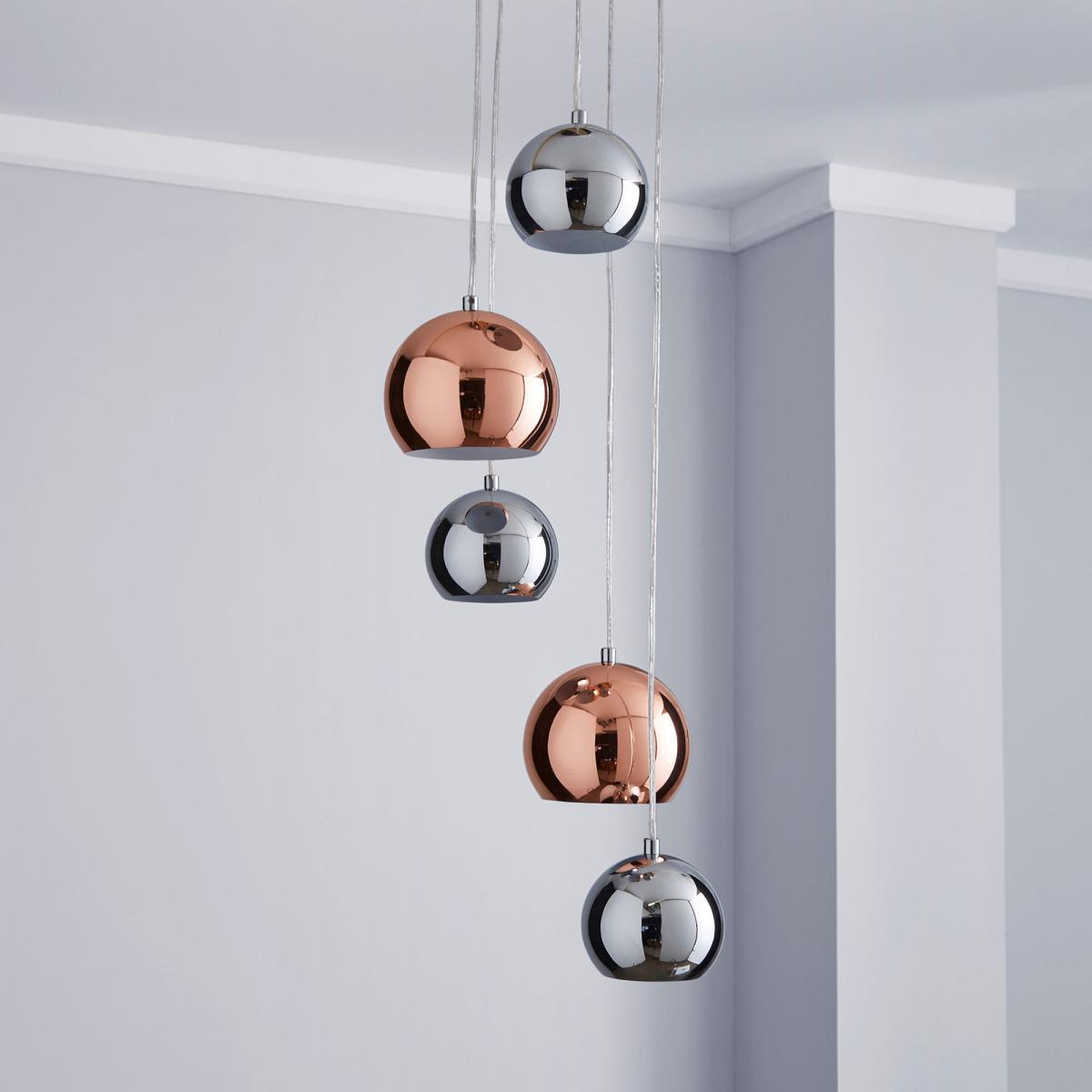 This stunning dimmable 5 light fitting is the perfect way to add a contemporary focal point to your home. Constructed from steel with chrome and copper plated shades, each individual head can be adjusted for height. Don’t forget your bulb! We sell a variety of light bulbs that you can browse online now.