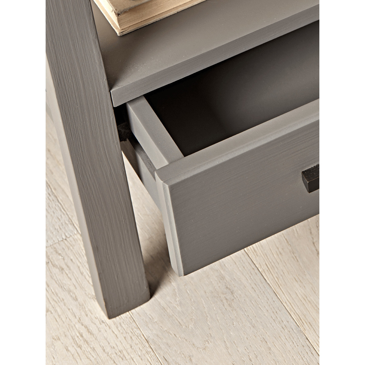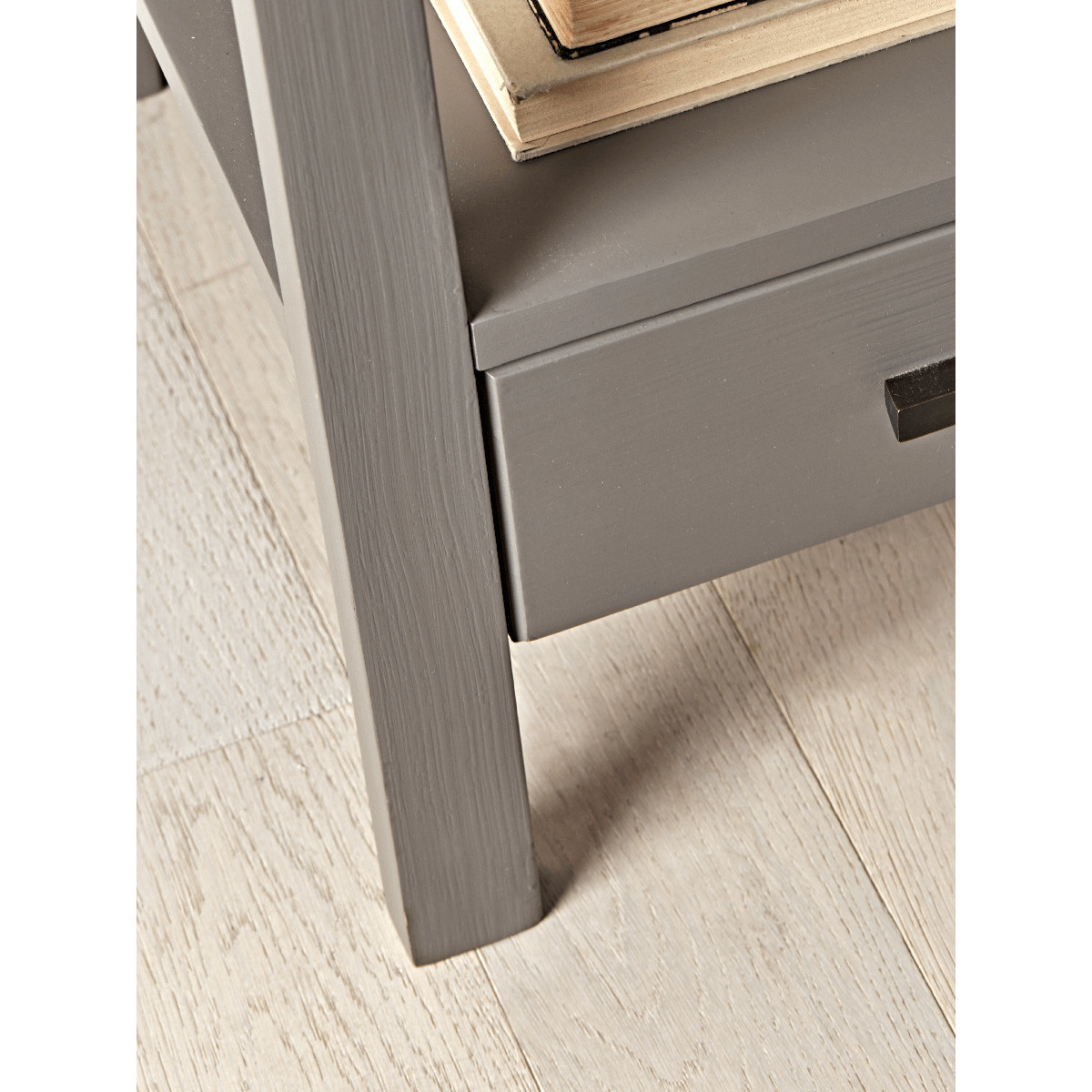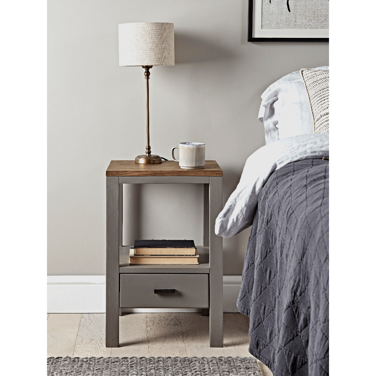 Crafted from Acacia with a smooth grey finish, our traditional bedside table makes the perfect home for your favourite book or bedtime hot chocolate. Each table is finished with a dark stain wood top and handy drawer with a simple iron knob to store your bedside essentials.