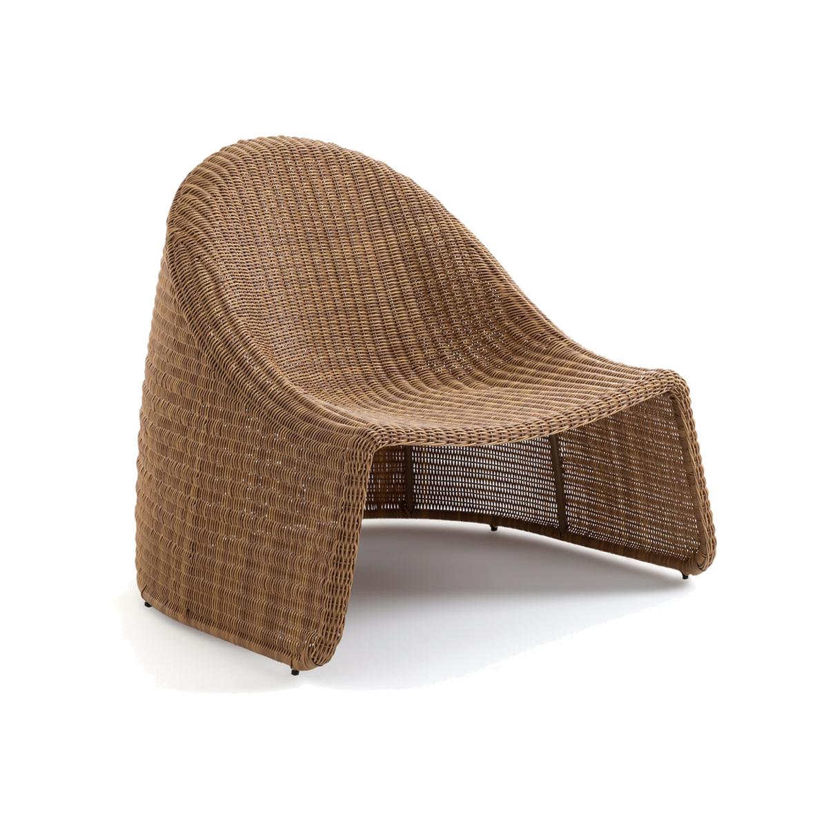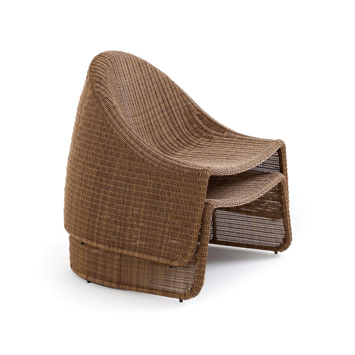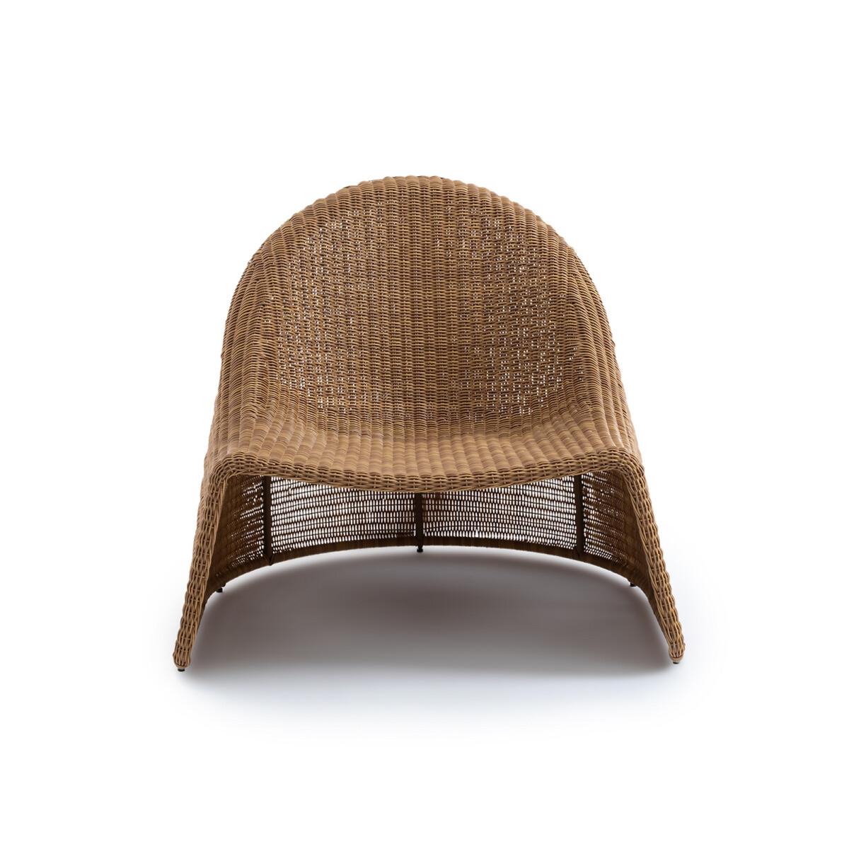 Curvy and rounded, the Sorada outdoor lounge chair invites you to relax. Stackable, it is made of recycled braided plastic.