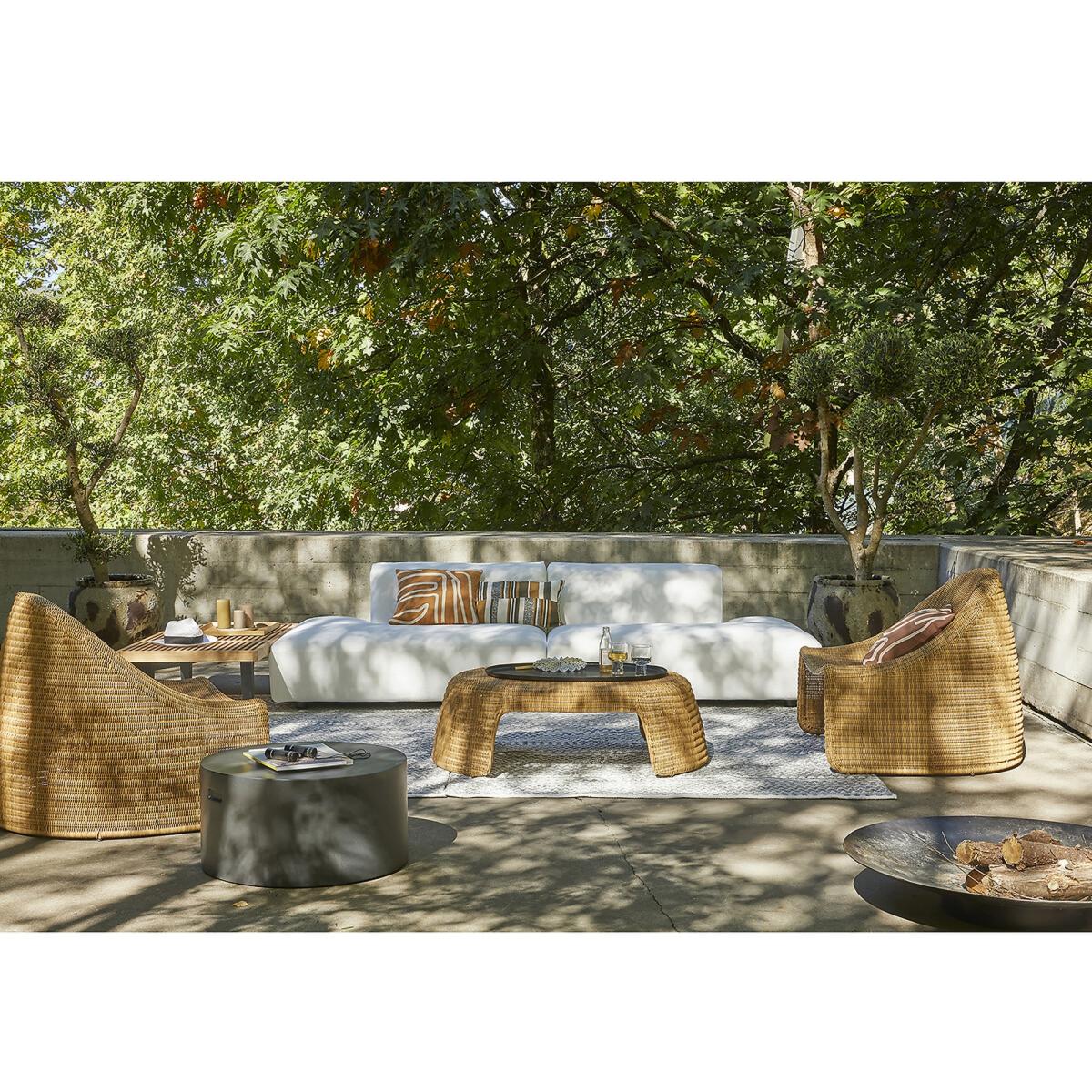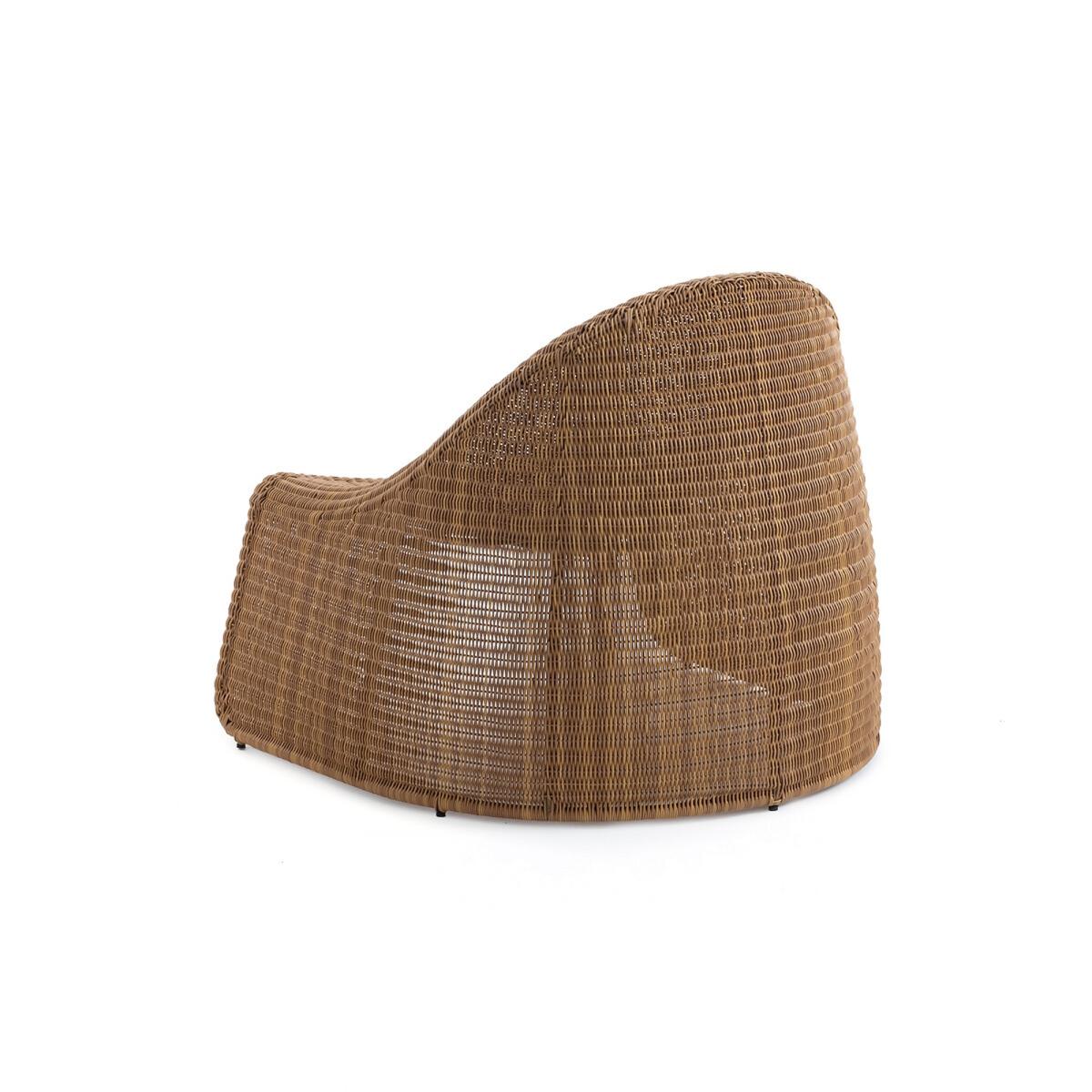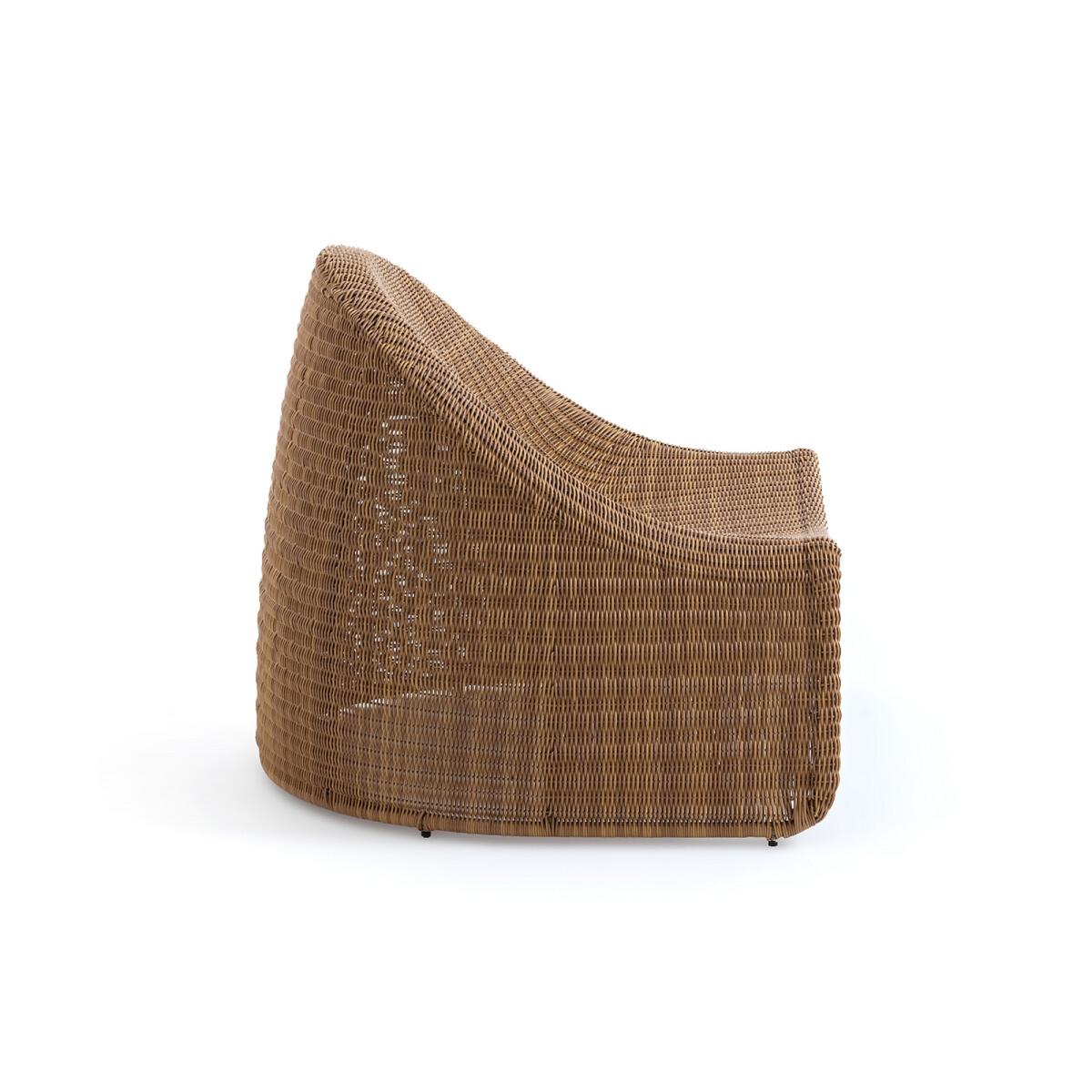 Curvy and rounded, the Sorada outdoor lounge chair invites you to relax. Stackable, it is made of recycled braided plastic.