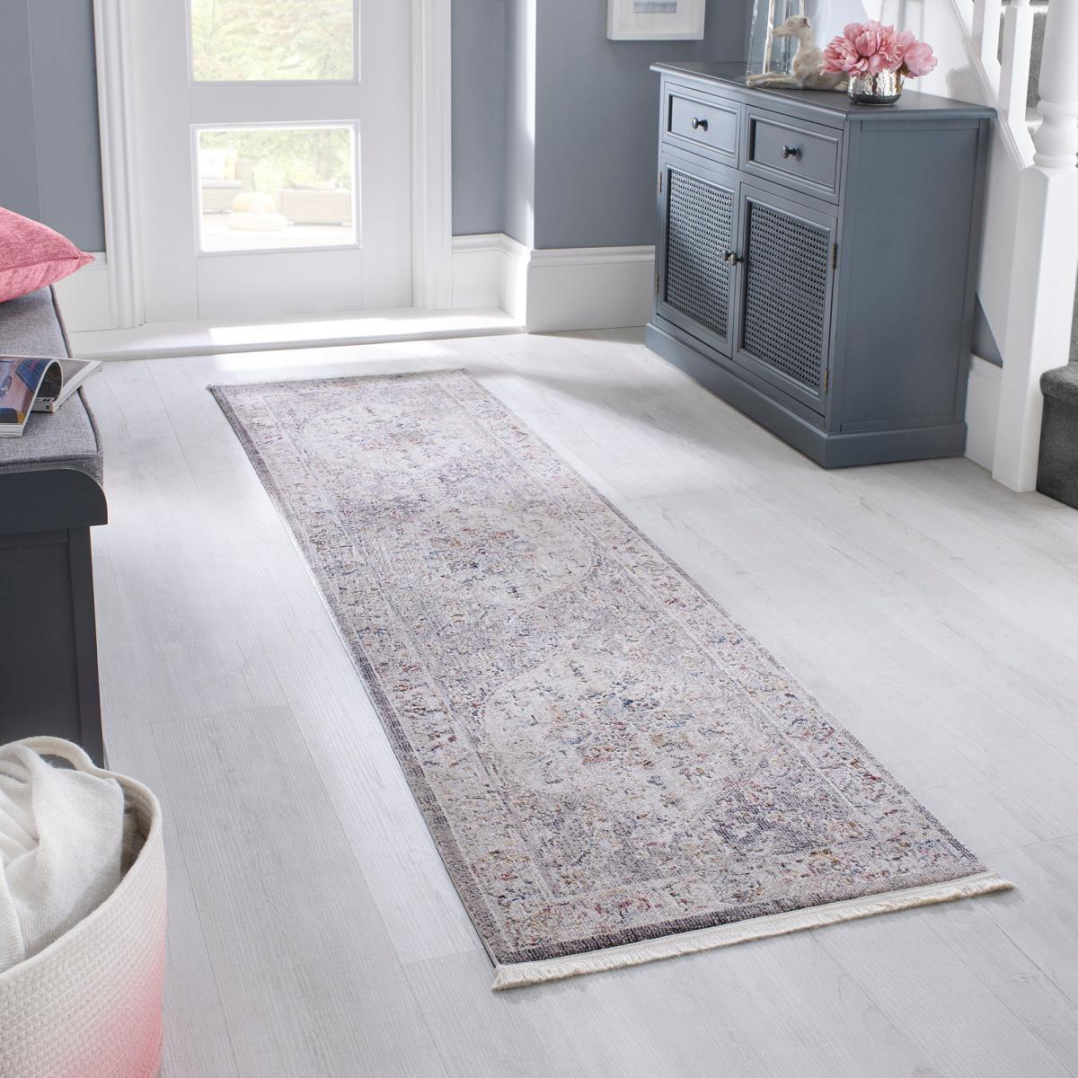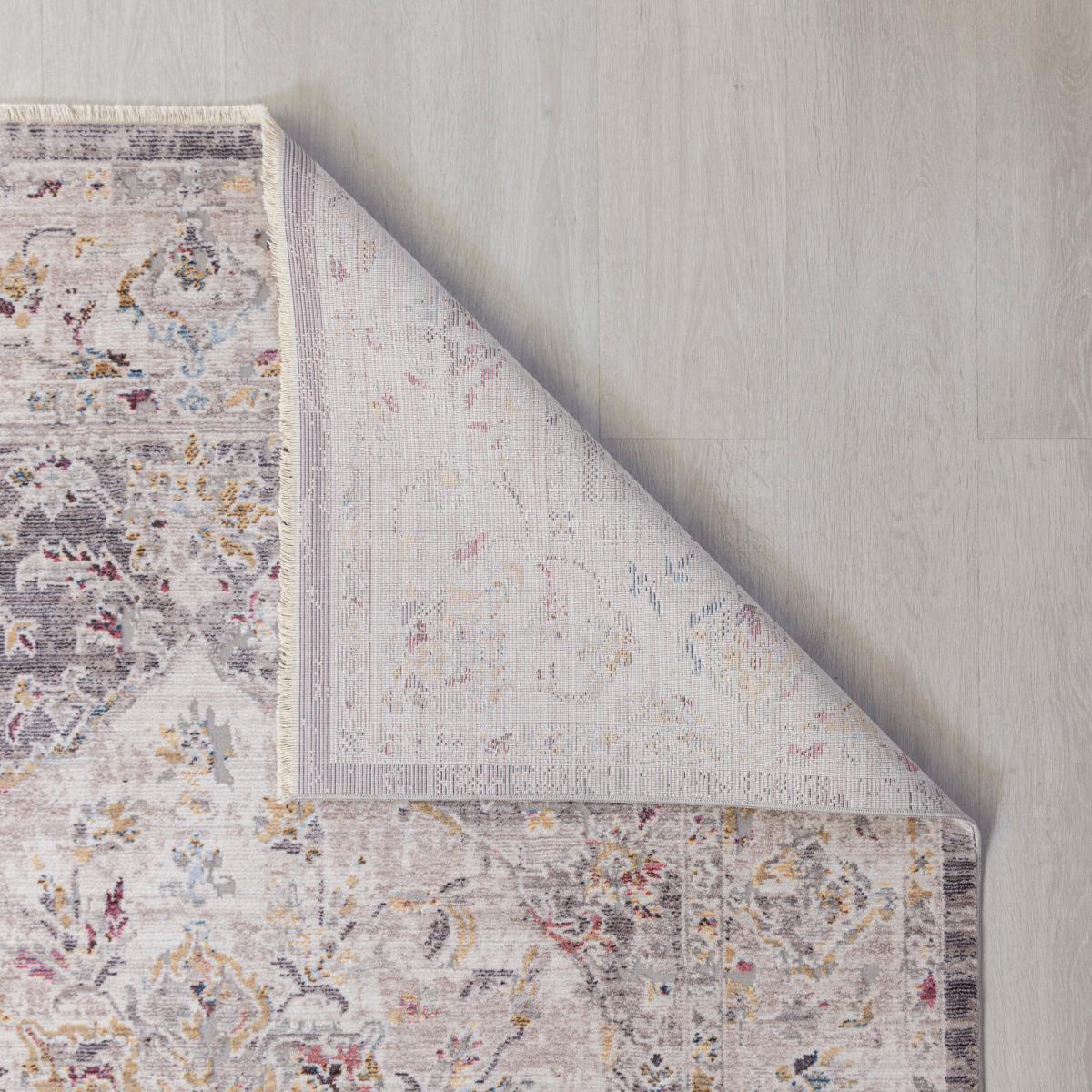 The Soraya design partners a quality low-pile finish with an on-trend distressed traditional pattern. In luxe shades, Soraya is perfect for getting the high-end vintage feel in your space. Made from 100% polyester, Soraya is soft underfoot and extremely low maintenance, perfect for no-fuss stylish households. Don't forget our handy anti-slip mat. Here,. Available in a range of sizes. On opening, re-roll your rug pile out and leave in a warm room for 24 hours before putting in place. This will help to reduce wrinkles and curling from packing. Use a slip-resist pad to help keep your rug in place and provide additional protection for hard floors. Before using any cleaning products on your rug, test an inconspicuous area first for colour fastness. Do not pull any loose threads, please cut carefully with scissors to remove. Avoid prolonged exposure to direct sunlight as this may cause fading of some dyes. Turn your rug regularly to ensure even wear. Clean spills immediately by blotting with a clean dry white cloth - do not rub. A small amount of fibre loss is normal on a new rug. Latex is used in the making of this rug. May be carefully vacuumed using a floor or brush attachment.