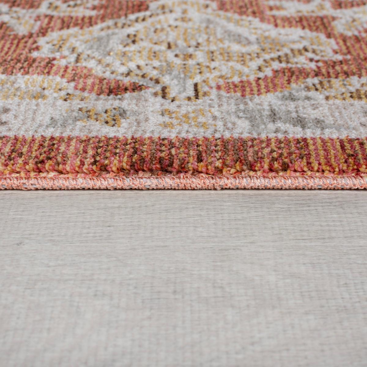 The Soraya design partners a quality low-pile finish with an on-trend distressed traditional pattern. In luxe shades, Soraya is perfect for getting the high-end vintage feel in your space. Made from 100% polyester, Soraya is soft underfoot and extremely low maintenance, perfect for no-fuss stylish households. Don't forget our handy anti-slip mat[here,](https://www. dunelm. On opening, re-roll your rug pile out and leave in a warm room for 24 hours before putting in place. This will help to reduce wrinkles and curling from packing. Use a slip-resist pad to help keep your rug in place and provide additional protection for hard floors. Before using any cleaning products on your rug, test an inconspicuous area first for colour fastness. Do not pull any loose threads, please cut carefully with scissors to remove. Avoid prolonged exposure to direct sunlight as this may cause fading of some dyes. Turn your rug regularly to ensure even wear. Clean spills immediately by blotting with a clean dry white cloth - do not rub. A small amount of fibre loss is normal on a new rug. Latex is used in the making of this rug. May be carefully vacuumed using a floor or brush attachment.