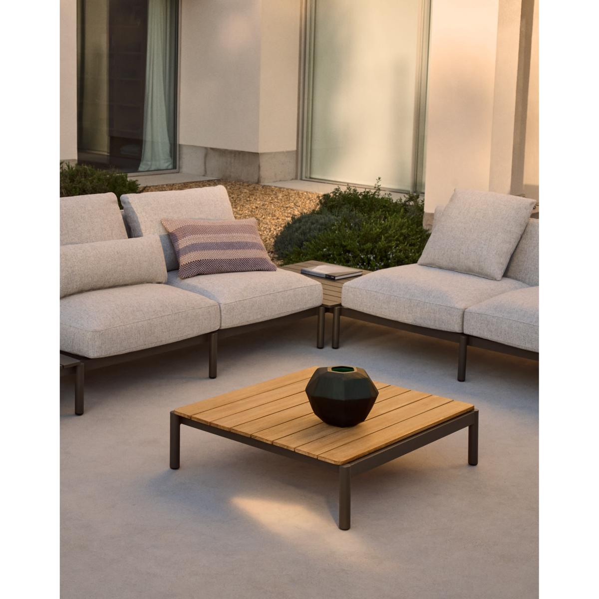 The aluminum coffee table with a teak top combines functionality, design, and durability to enhance any outdoor space. Exclusively designed for Kave Home by Made Studio, its aluminum frame is lightweight yet incredibly strong, ensuring long-lasting outdoor use. Resistant to rust, corrosion, and harmful UV rays, it’s built to withstand the elements. The teak top adds warmth and sophistication, known for its exceptional durability and resistance in outdoor environments. This premium material handles moisture effortlessly, ensuring reliability even in the harshest conditions. Designed with versatility in mind, this table pairs perfectly with other pieces from the same collection, allowing you to create sets of different heights to suit your style and needs. Its sleek finish adds a touch of freshness and modernity, effortlessly fitting into any outdoor setting. It’s the ideal choice for those seeking timeless design without compromising on quality or functionality. With Sorells, you can create a sofa that’s tailored to your needs, customizing the modular pieces to suit your lifestyle and preferences. It’s the perfect blend of contemporary design, premium materials, and comfort, transforming the way you enjoy your outdoor moments.