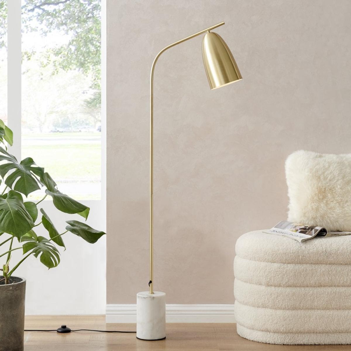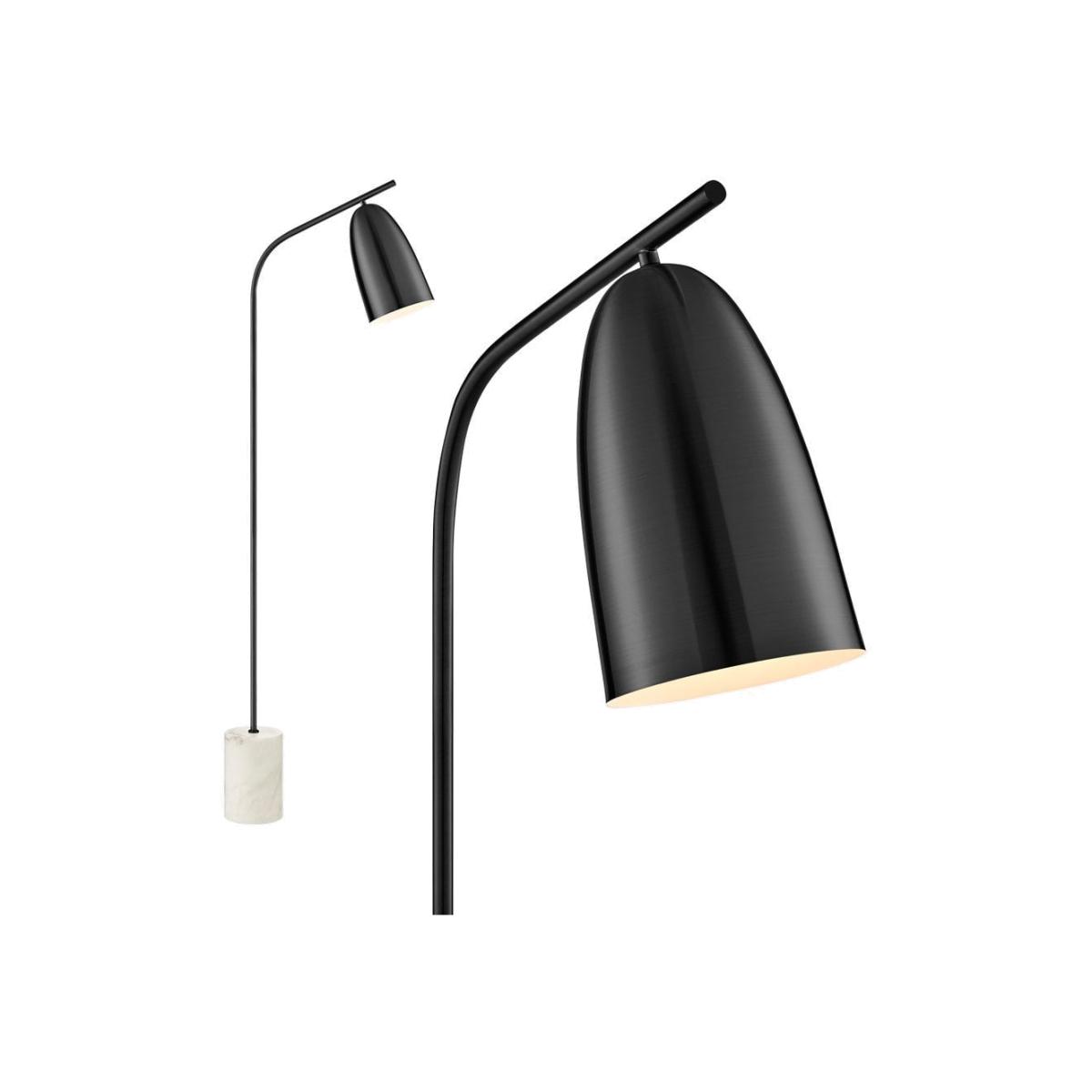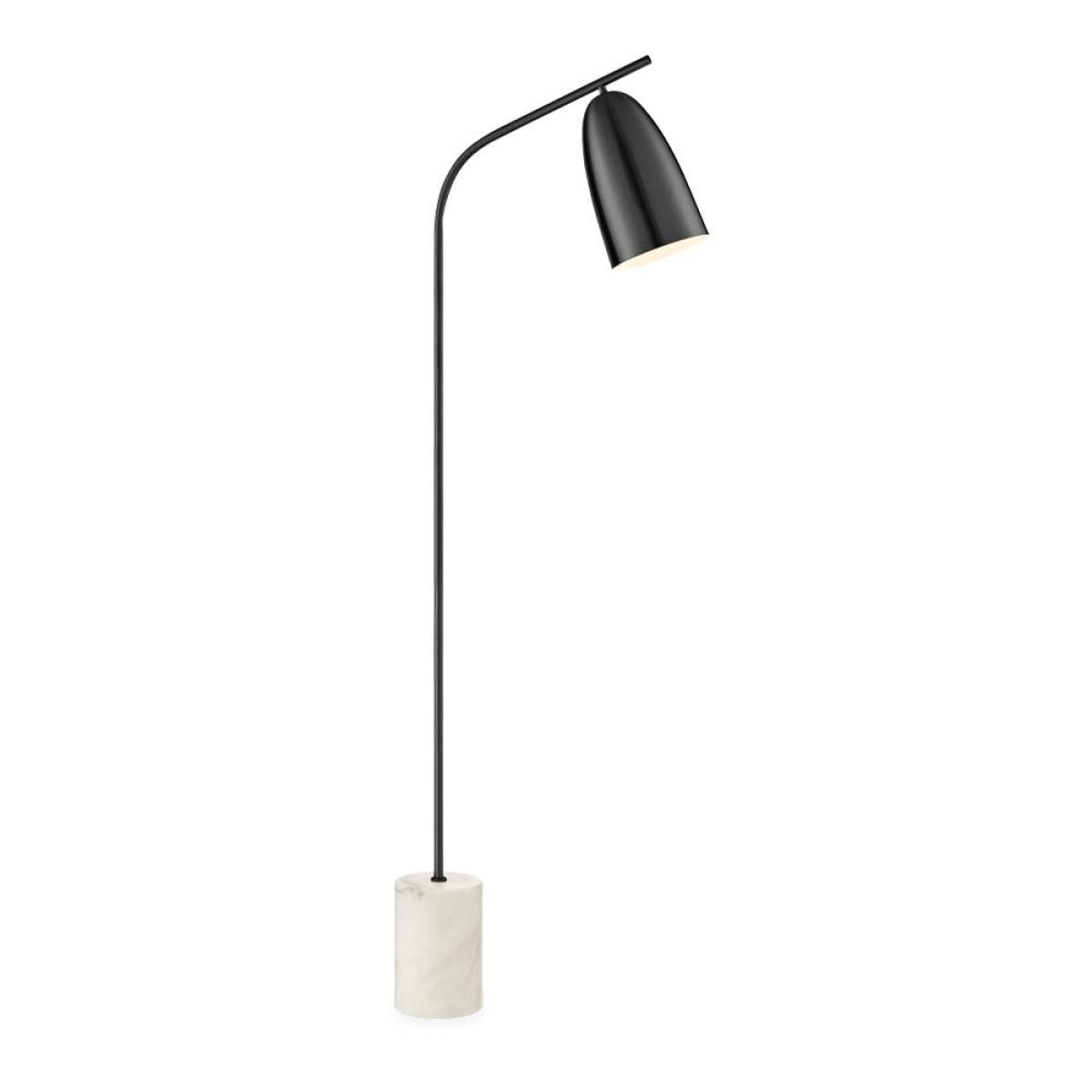 The Soren floor lamp adds a touch of retro flavour to any space within your home. The minimal Scandinavian design features a smooth dome-shaped black metal shade and pole, teamed with white marble base. The subtle shade creates a warm and relaxing light glow, perfect for your living room.