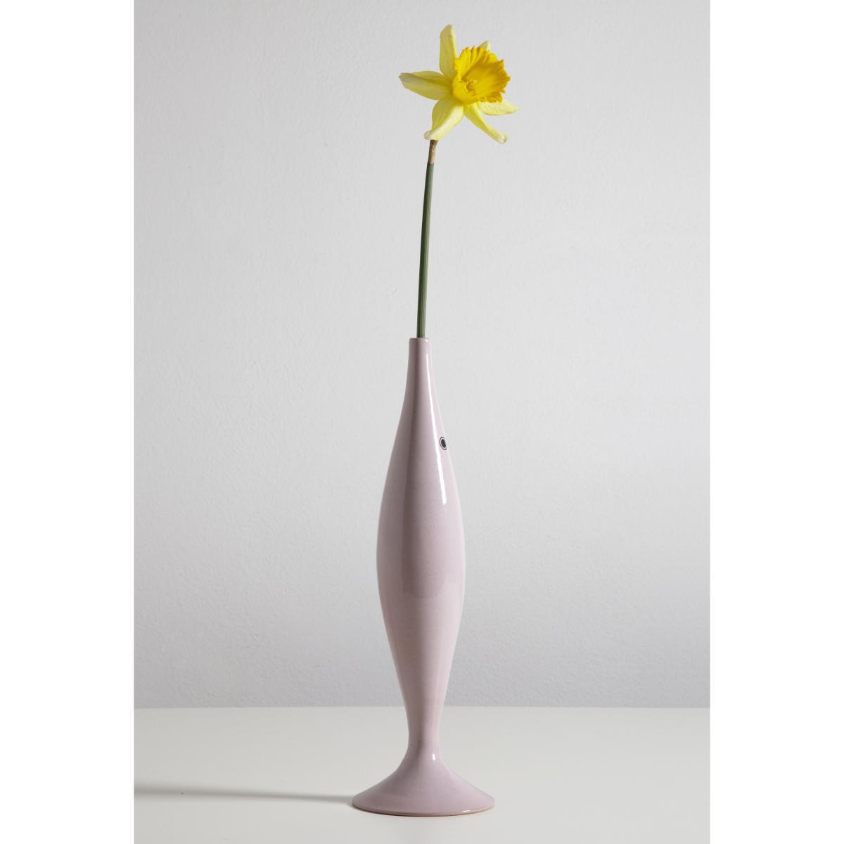 With their mouths open as if eagerly awaiting for water and flowers, the three fish-shaped vases in ceramics are a manifestly iconic and ironic project. The Pesci taliani Collection is inspired by three typical Mediterranean fish, each with a ifferent size and shape : an anchovy (pink), a gilthead (turquoise) and an opah (yellow).