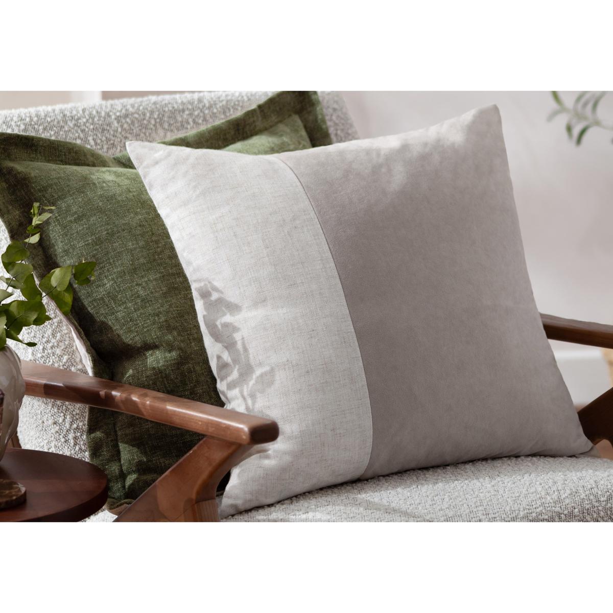 Washed velvet and a linen-look fabric are perfectly paired in our stylish and modern 100% feather-filled Sorlen cushion. In a choice of contemporary colours. Why you'll love it This sophisticated cushion features a simple asymmetric 2-panel design. A stylish blend of fabrics – washed velvet with a linen-look material. Refined raw edge finish. In a wide choice of colours for the washed velvet panel. Soft 100% feather filling. This cushion is part of the Furniture Village home accessories collection. What you need to know 100% feather filling. Zip fastening. For indoor use only. Plump regularly. Some fabrics can show wear on areas of more use or in direct sunlight. Clean regularly using a soft brush or vacuum with the curtain attachment. Deal with any spills promptly. Professional cleaning advised for oil- and grease-based stains. Please read our upholstery care guide for more advice. Dimensions Height: 50 cm (20 in). Width: 50 cm (20 in). Item code:SORLCUSHDR-001