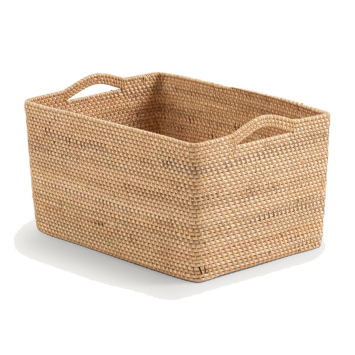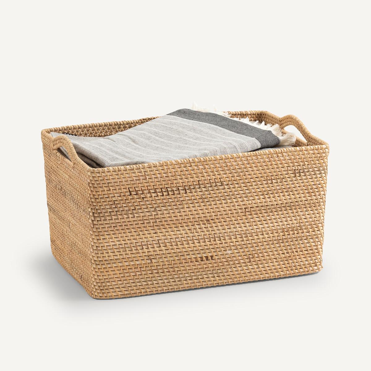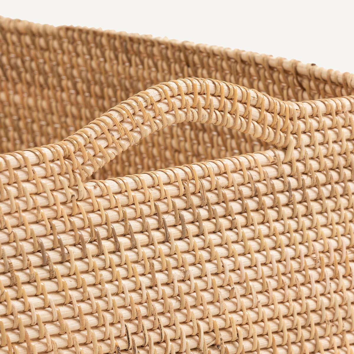Made from woven rattan, the Sorong rectangular basket offers a significant storage volume in an irresistible design. Product Details • Woven rattan • 2 handles. Dimensions • Width: 50cm • Height: 33cm • Depth: 37cm. Dimensions and weight of package: • L53 x H33 x D40cm. 2.2kg