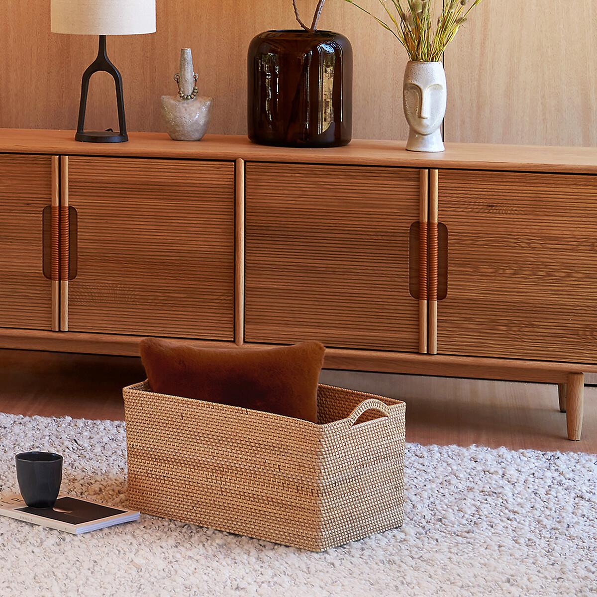 I love this rattan storage basket for its natural texture and versatile design. It works particularly well in Boho, Scandinavian, or coastal interiors, where organic materials and neutral tones help create a calm, laid-back vibe. Practical styling tips include using it for organising magazines, throws, or household essentials in living rooms and bedrooms. Its rectangular shape maximises storage space, while the woven rattan adds tactile interest without overpowering other decor elements. This basket seamlessly combines function and style, making it a great choice for reducing clutter while enhancing a relaxed, natural look.