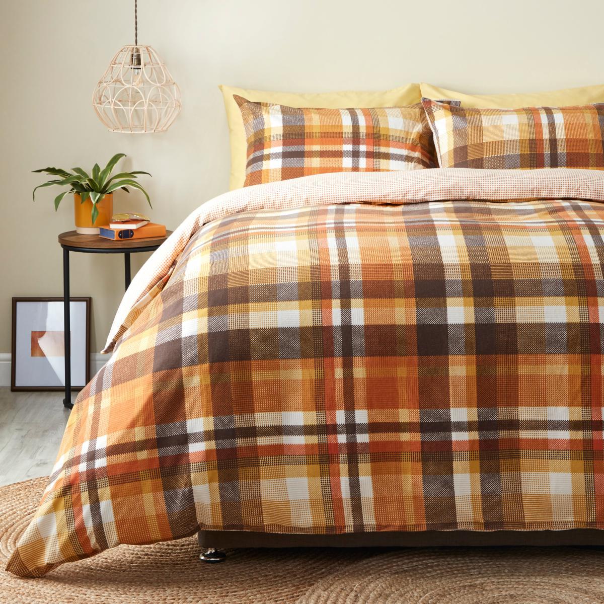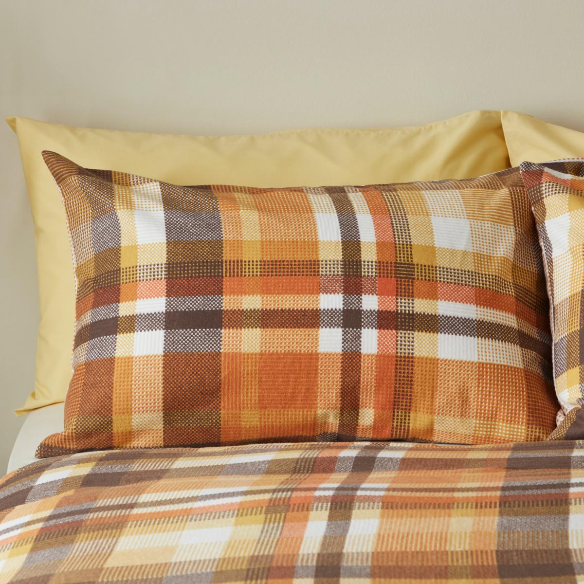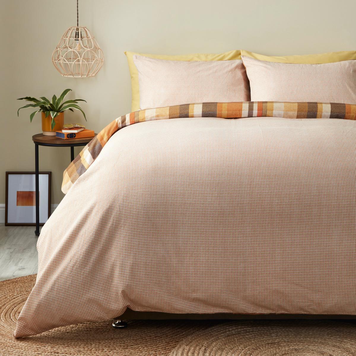 The warm tones that make the stunning checked stripe flannelette even more cosy to snuggle under. The checked front is then complimented with a reversible design of tiny square dots. A button closure allows you to easily remove the duvet when required. Care Instructions:. This collection is is verified by OEKO-TEX® and independently tested for harmful substances as well as manufactured using sustainable processes under socially responsible working conditions. MADE IN GREEN by OEKO-TEX® is a unique product label to trace the countries and production facilities - search the product label for more information.
