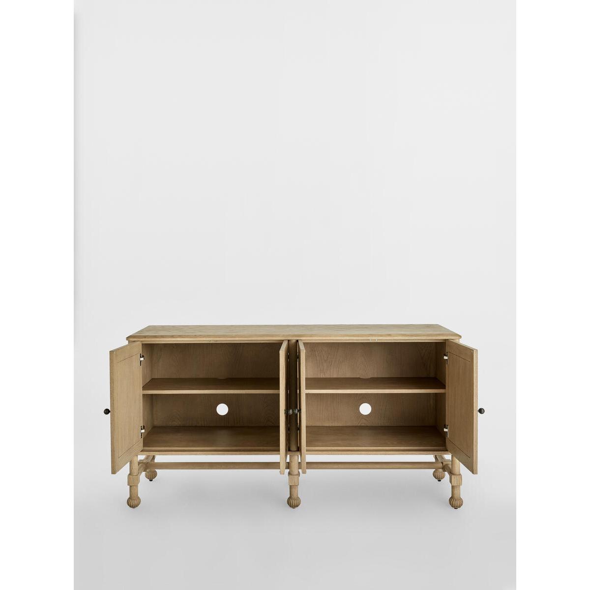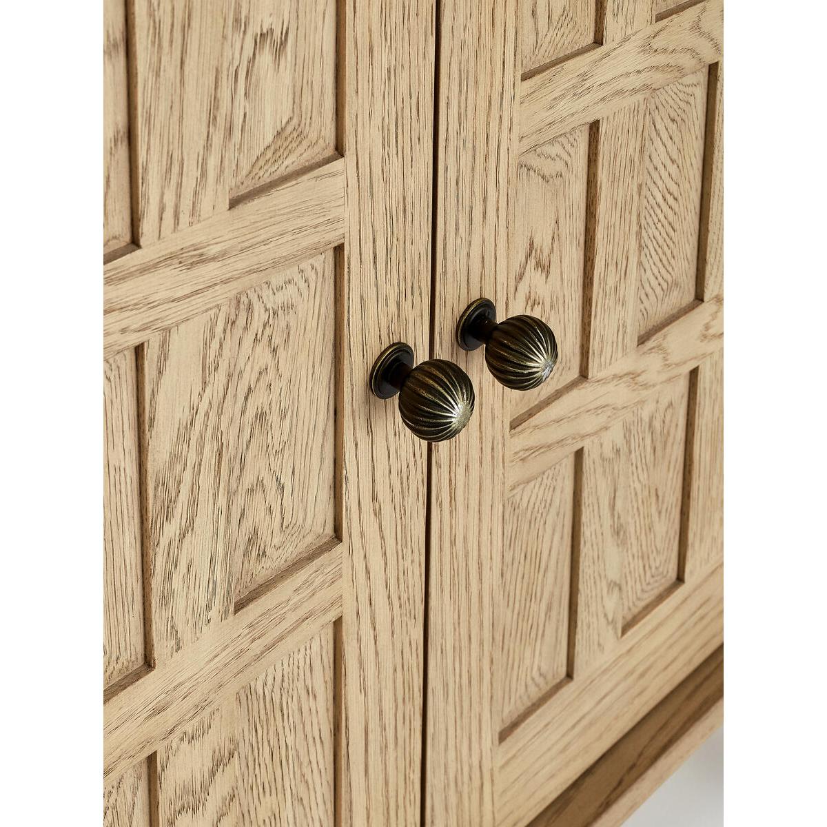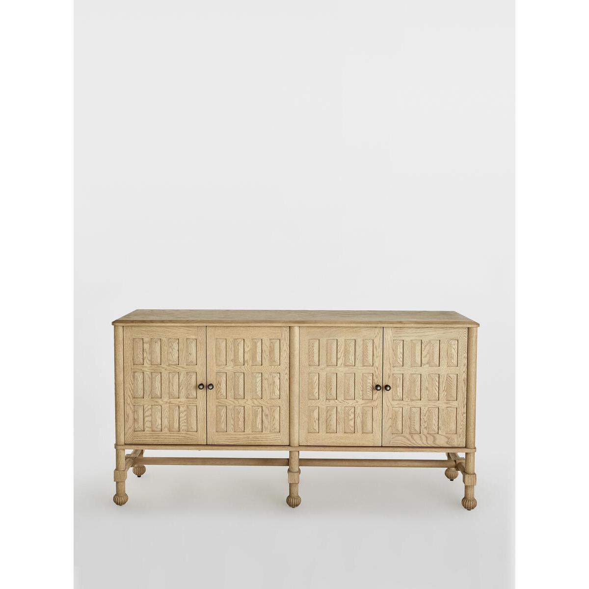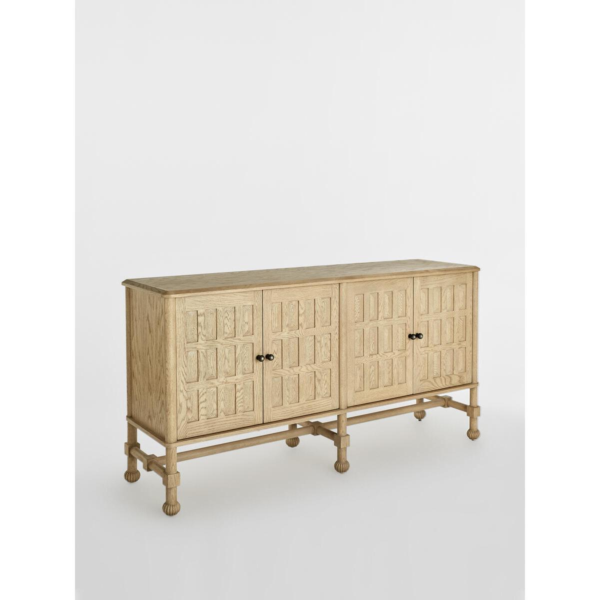 The Sorrell range is great for classic interior schemes. Craftedfrom bleached oak with a wire-brushed finish, the sideboardfeatures four doors with cast metal handles, a bevelled-cut frontand fluted wooden bun legs. Display it in your living space tomirror the classic pieces at Babington House. Oak and oak veneer sideboard. Wire-brushed finish. Rounded corners. Two soft-close dovetail drawers. Bevelled-cut front. Cast metal handles. Inspired by Babington House.