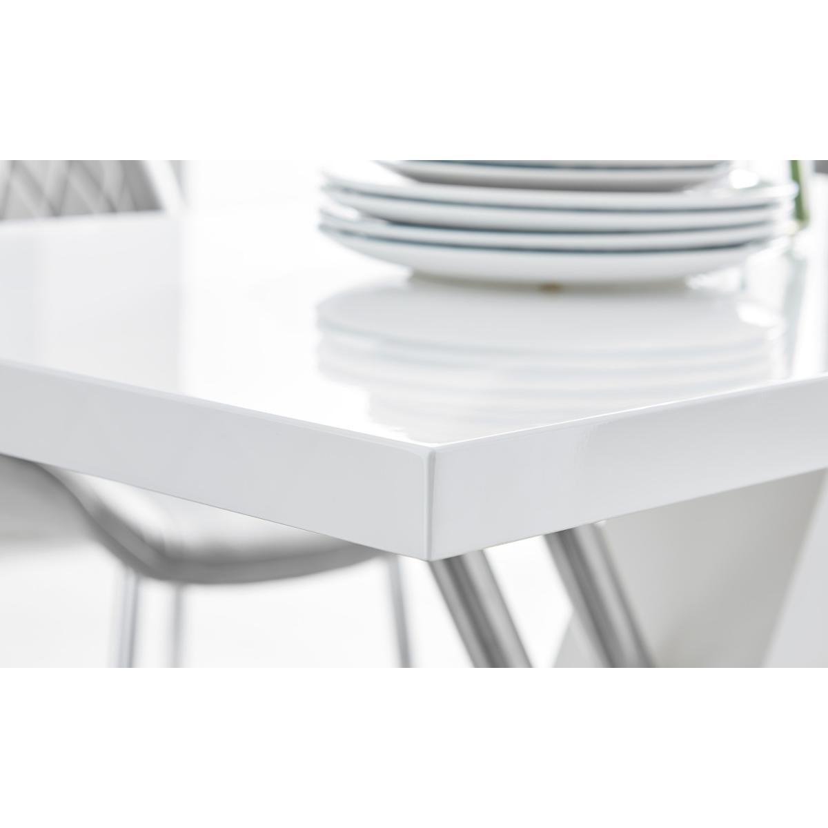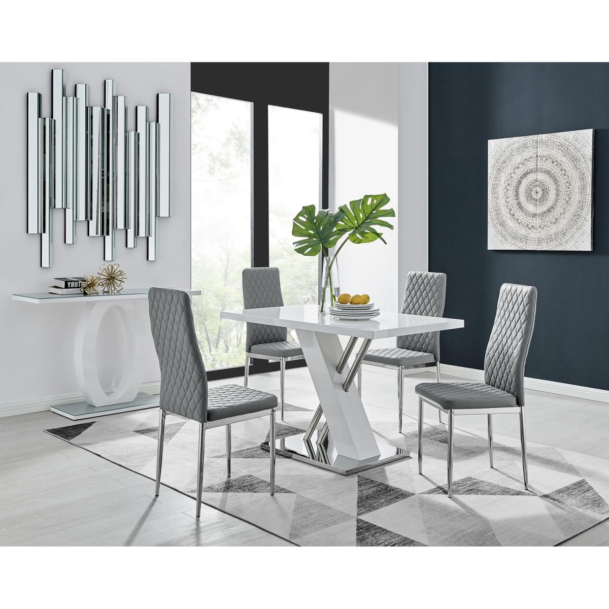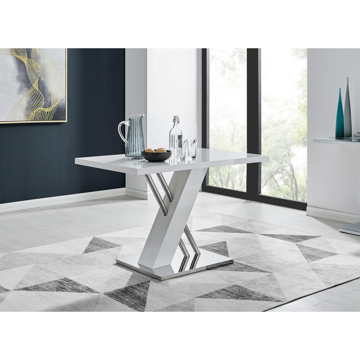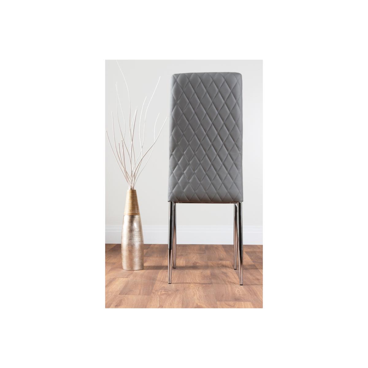 With a unique design and high quality finish throughout the Sorrento dining table really is a must have! The dining table is a stunning combination of high gloss and stainless steel metal boasting a 120x70cm surface, which allows plenty of room for dining with guests. As well as providing style the chrome metal legs act as an extremely strong support for the table and are finished to the highest standards. The table features easy wipeclean surfaces meaning your table will stay looking brand new for years to come! Exuding style and quality the Sorrento table is capable of being a centre piece in any modern home and really is a must have!Pair it with our Milan chairs for the complete look. The stylish chrome leg and hatched leather combination gives this chair a contemporary edge, whilst it's simple design allows for practical everyday usage. The chairs are made from high quality faux leather and are ergonomically designed for maximum comfort and support. They feature soft touch faux leather with a deep foam seat cushion and plastic feet to protect the floor from any damage!