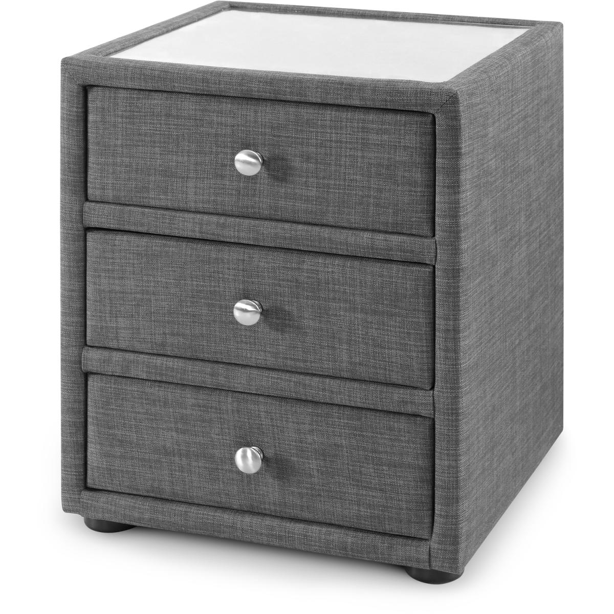 The Sorrento Bedside Cabinet is upholstered in a sophisticated slate grey linen fabric and features three well-sized drawers. It is topped with a tempered glass surface for added practicality. It is a perfect accompaniment for both of Julian Bowen's Sorrento and Santorini beds, which are presented in the matching fabric.