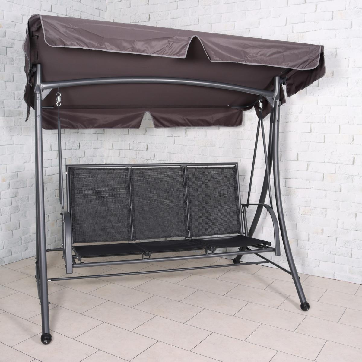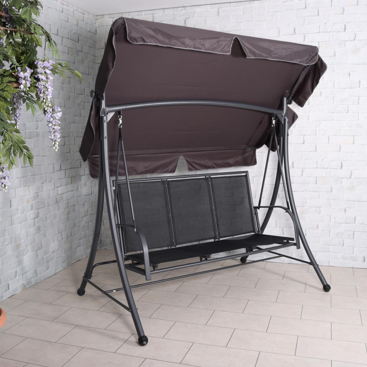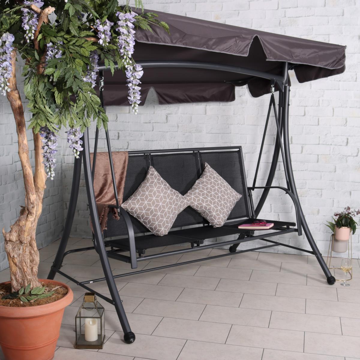 The Sorrento Black textylene 3 seater swing bench is a perfect fusion of contemporary style and a traditional concept. Made from a sturdy steel frame with an all weather textylene seat and polyester cover this swing bench is practical and durable come rain or shine. Perfect for any outdoor space or to accompany the Sorrento dining range.