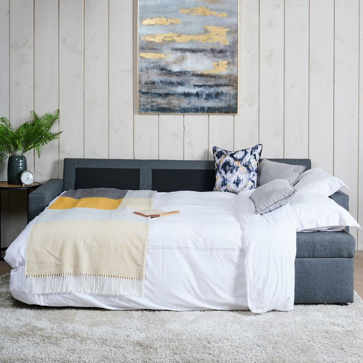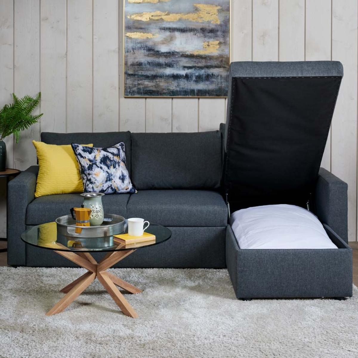 The Sorrento corner sofa bed is the perfect solution to that need for extra sleeping space when your guests to stay. The bedding can be kept in the corner section which raises on on a sprung system to reveal the storage space in side. Converting to a bed couldn't be simpler. Just reach in behind the front panel and pull the handle up and out. The sofa then converts into a decent sized double bed.