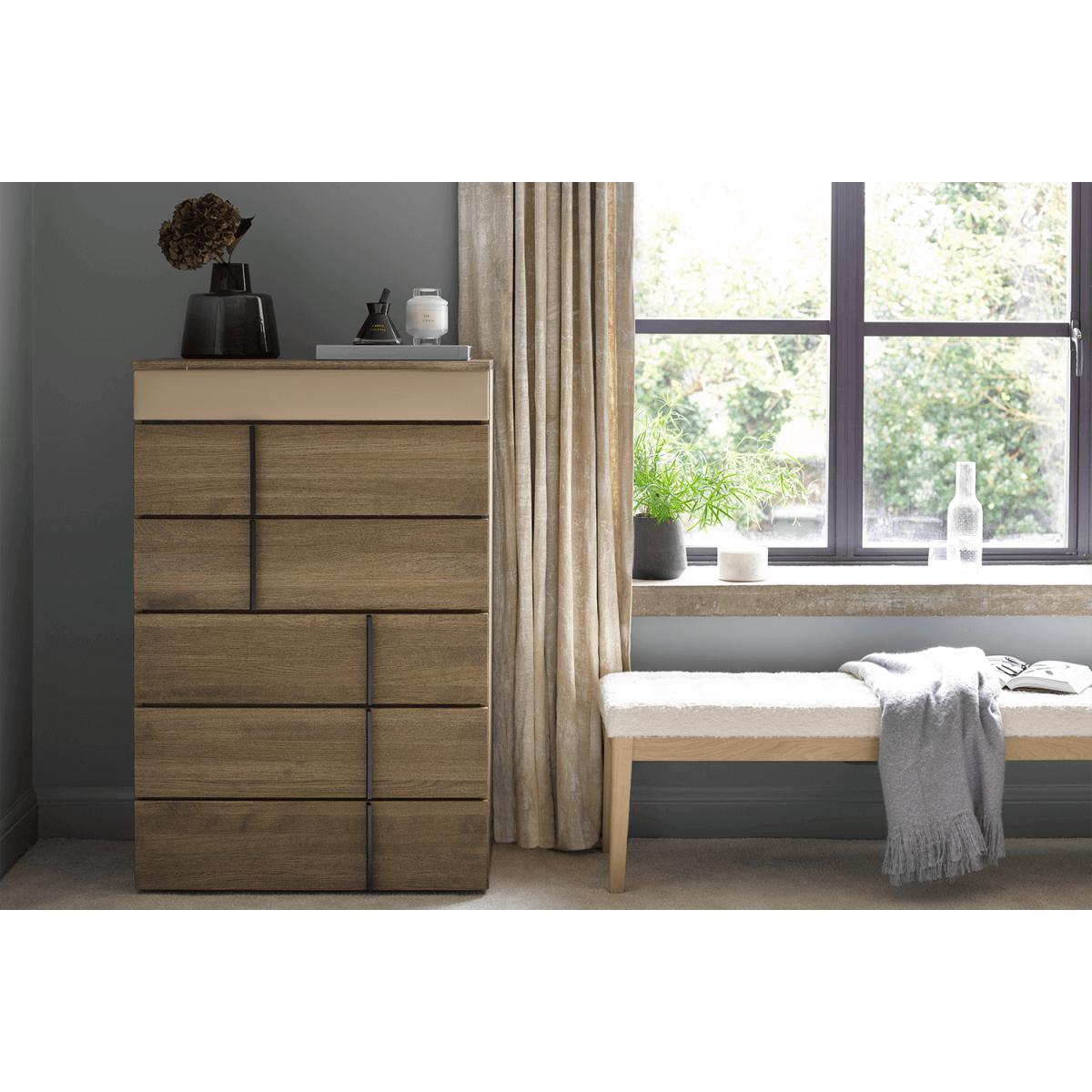 I love this chest of drawers because of its versatile design and fresh, natural vibe. The Seaweed Smart Cotton finish offers a relaxed yet contemporary feel, making it an excellent addition to both modern and Scandinavian-inspired interiors. It works particularly well in bedrooms or larger living spaces where practicality is key, thanks to its generous storage. For styling, I’d suggest pairing it with minimalist accessories and soft textiles to highlight its natural wood tones, or adding a pop of colour with accessories on top. Its clean lines and understated design make it adaptable for various schemes, from coastal to urban interiors, giving you plenty of flexibility to make it work in different settings.