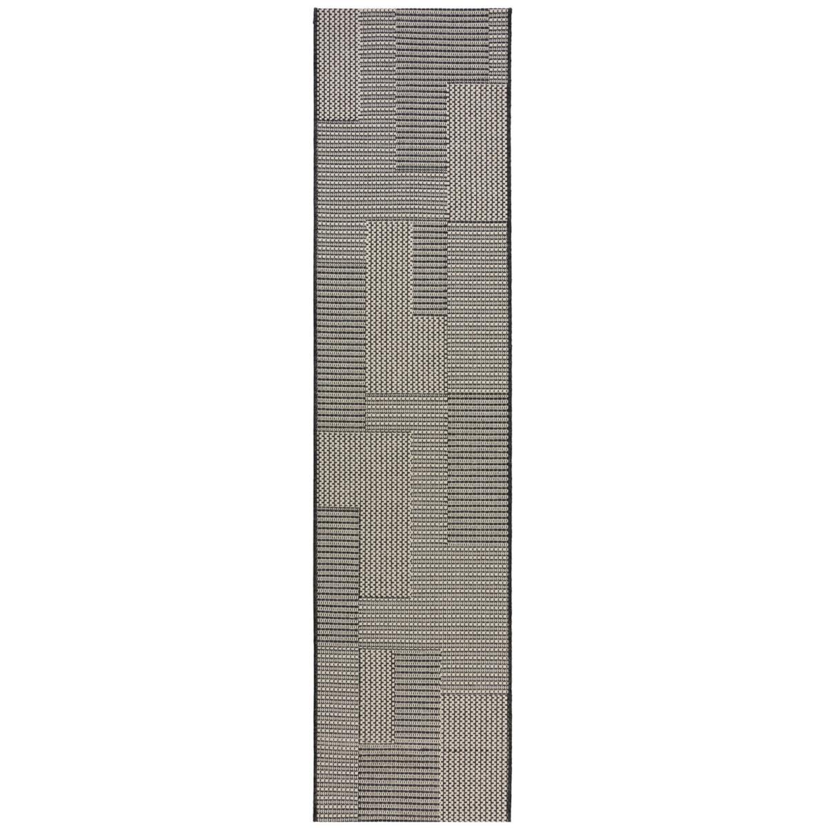 Add texture to your indoor and outdoor spaces with the Sorrento design. Pairing a monochromatic shades with a unique block design. Our Indoor/Outdoor collections use a 100% polypropylene composition to make our designs perfect for both indoor and outdoor living. Built for the outdoors with weather-proof and UV-resistant qualities, don't worry about any mess, the Sorrento runner is stain-resistant and easy to clean with a simple hose down. The low-profile composition is perfect for sitting under furniture. We love using outdoor runners to create social outdoor zones or add comfort underfoot in busy areas such as the kitchen. This is a hard wearing machine made rug suitable for indoor and outdoor use. When opening, re-roll your rug pile out and leave in a warm room for 24 hours before putting in place, this will help to reduce wrinkles and curling from packing. Turn your rug regularly to ensure even wear and reduce pressure marks from furniture. Do not pull any loose threads, please cut them carefully with scissors to remove. This rug is UV treated to prevent fading – however when not in use for extended periods roll the dry rug and store in a covered/shaded area. Before using any cleaning products on your rug, test an inconspicuous area first to ensure it does not affect the colour. Clean spills immediately by blotting with a clean dry white cloth - do not rub as this may stain the fibres. Vacuum your rug regularly to remove everyday dust. When using indoors we recommend the use of an anti-slip mat beneath your rug to prevent it from slipping and sliding out of place. When using outdoors please take care not to place on rough or sharp surfaces that may damage or pierce your rug. Please keep away from fire. Please do not leave babies or young children unsupervised on this rug.
