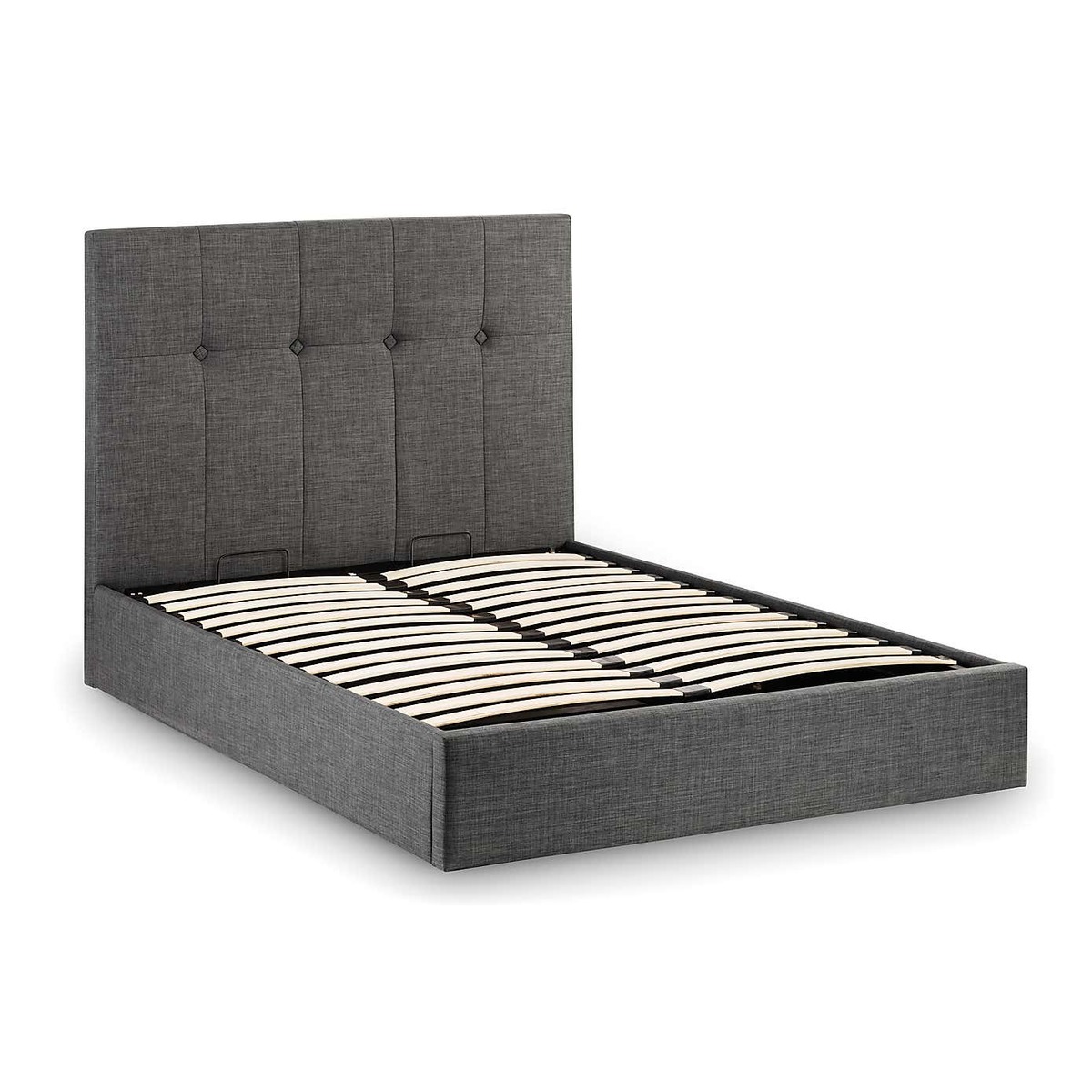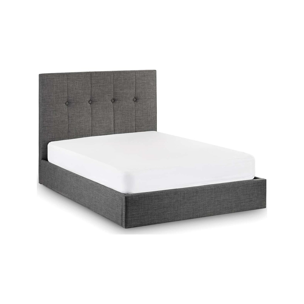The contemporary Sorrento Upholstered Ottoman Bed is upholstered in a slate linen fabric and features a high headboard with diamond shaped buttoning. A gas-powered lift-up base offers phenomenal storage space beneath. Please note, unfortunately we cannot deliver this item to the Channel Islands.
