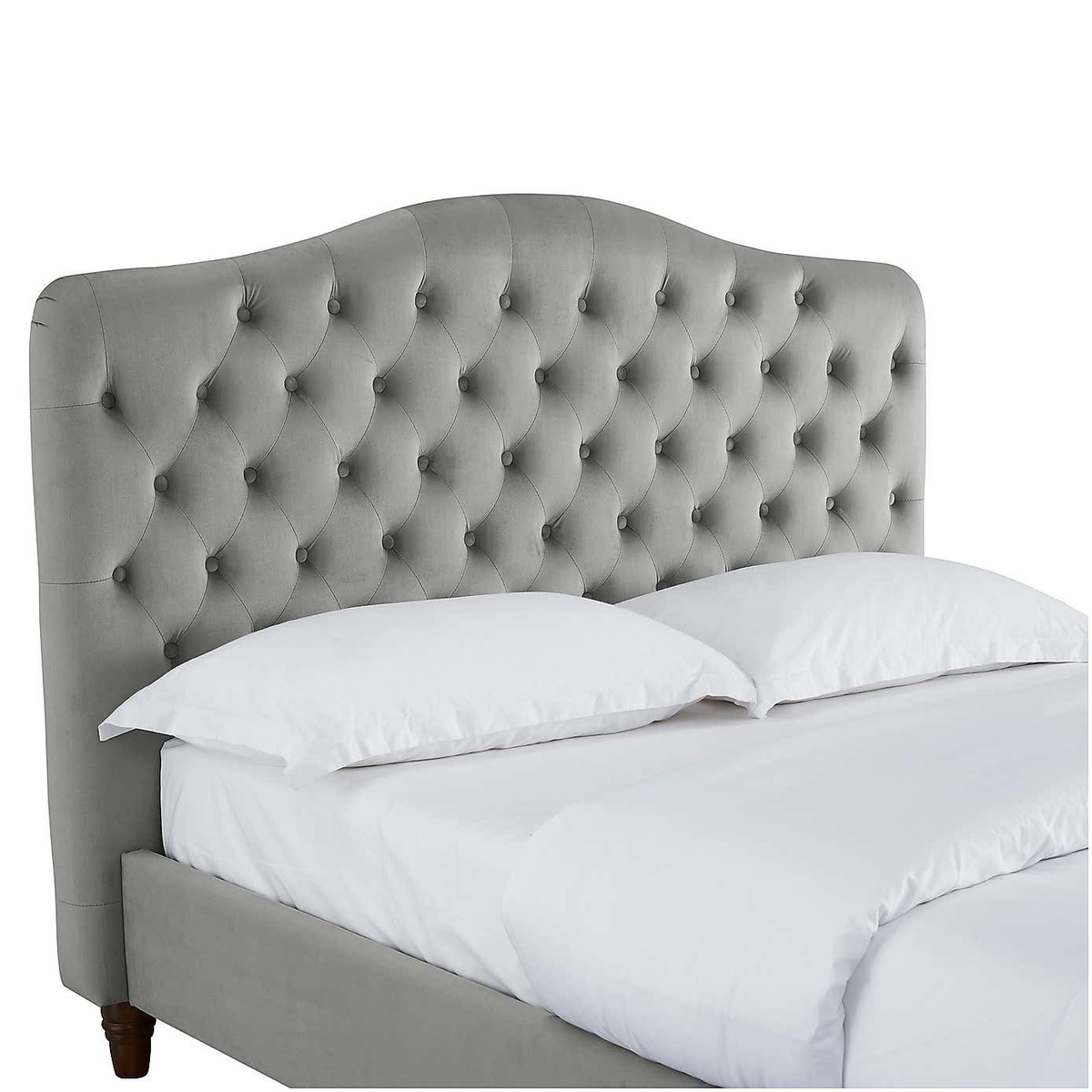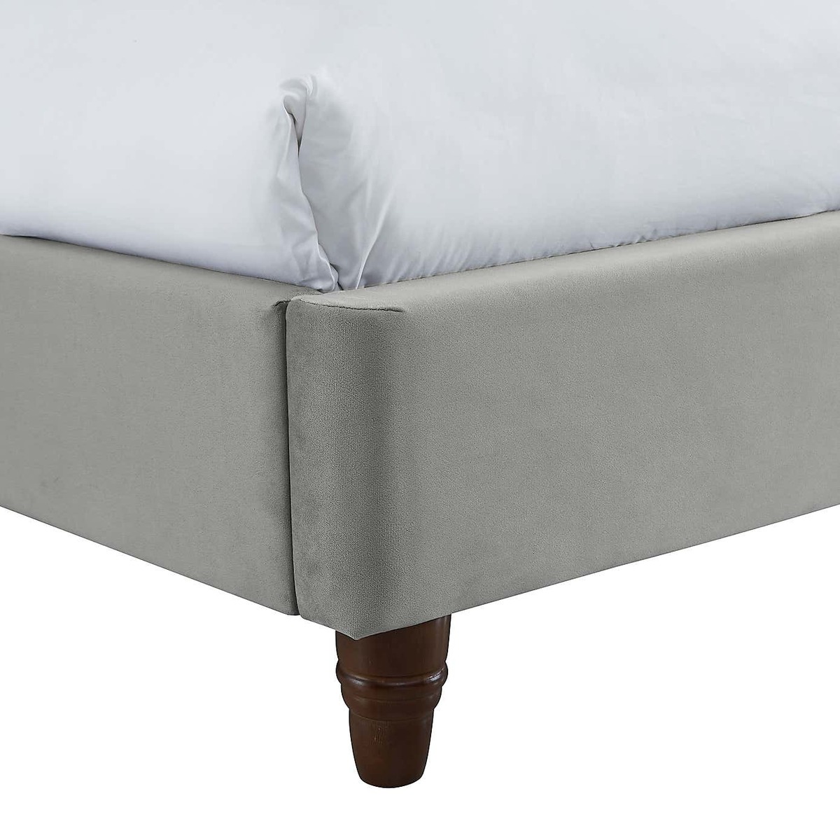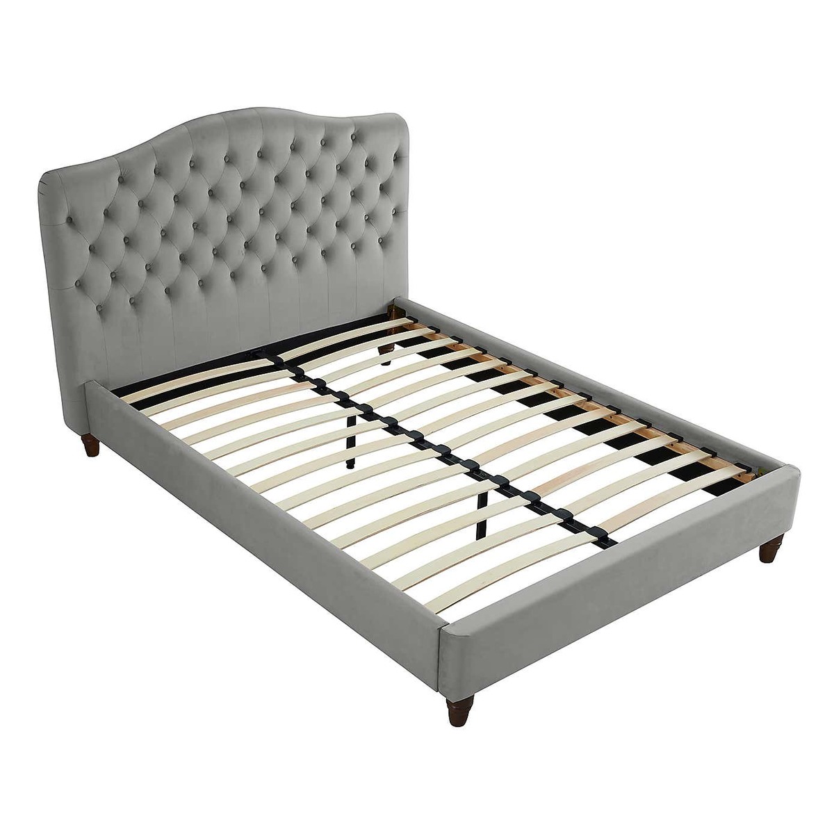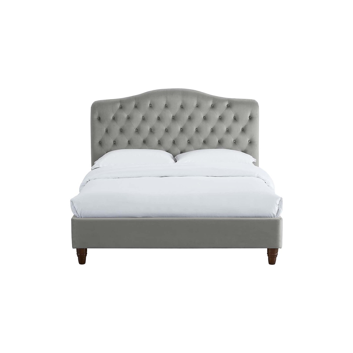 Presenting a modern take on a classic design, the Sorrento bed frame is upholstered in a soft silver velvet fabric and features a stunning curved, button back headboard. Complete with dark wood finished legs, and comfortable foam padding this luxurious bed frame would make a great addition to your bedroom.