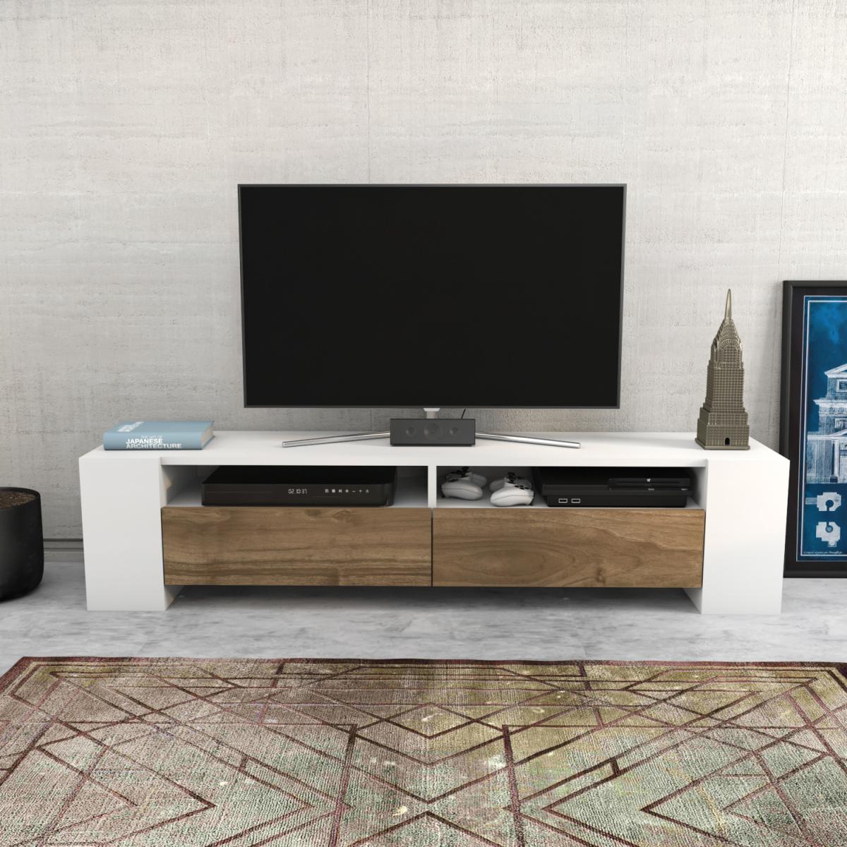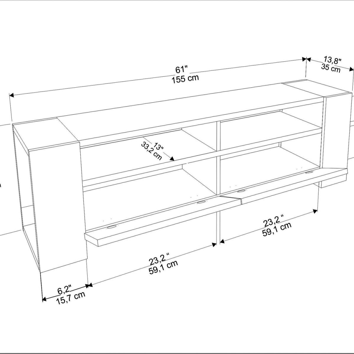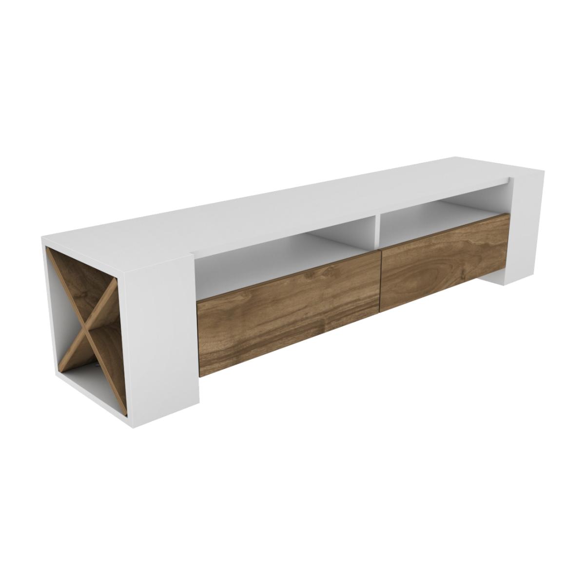 Sosuke 155cm wide modern media stand for TVs up to 70'' is defined by practical functionality and streamlined design. With 2 middle shelves, 8 side shelves and two cabinets, this design offers huge storage space for your books, magazines, TV tuner, remote controller, or other media devices/collections. The side shelf design is making this TV unit chic and useful at the same time. Top this design with a sleek flat-screen TV, then deck out open shelves with your favourite books and DVDs, framed family photos, your new video game console, tuner, and cable box. The media stand is made of 18mm thick quality melamine coated particle board and banded with first-class PVC edge banding tape.