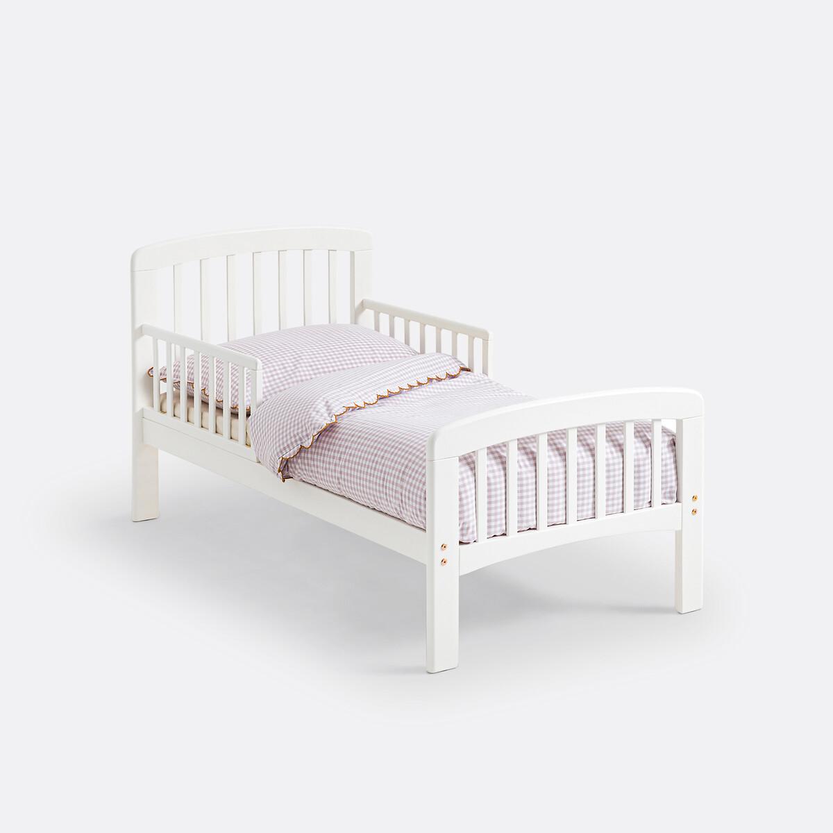 Made in Europe, designed in birch and equipped with barriers to prevent baby from falling... The Soti child's bed with bars has a simple and contemporary design. Product Details • In solid birch, water-based paint finish • Sleep space 70 x 140cm • Fixed slat safety barrier • Supplied with bed baseQuality. Our products comply with current safety requirements: NF D60-300-4 Standard:2019. Dimensions • Length: 145.6cm • Height: 78cm • Depth: 79.5cmDelivery:. This product is sold ready to assemble. Note! Please check that all access points are large enough to accommodate your delivery (doors, stairs, lifts). • Made in Europe. Parcel dimensions and weight • 1 parcel • L150 x D84 x H7.5cm. 16kg