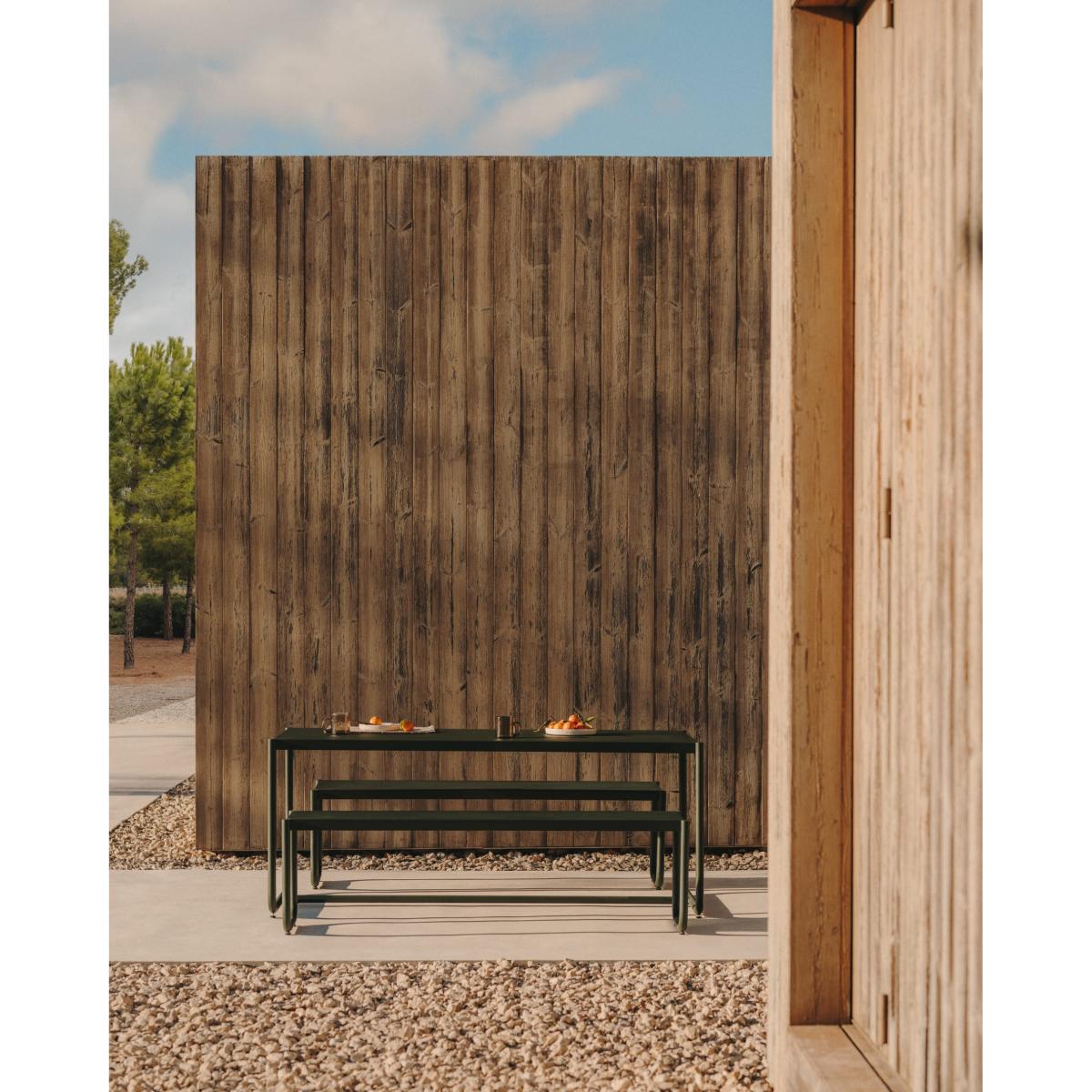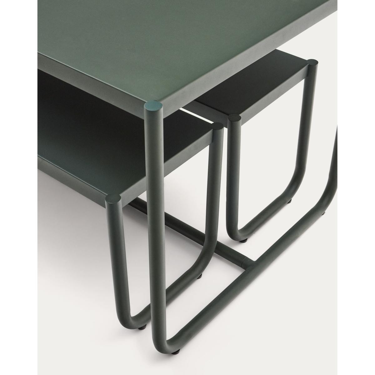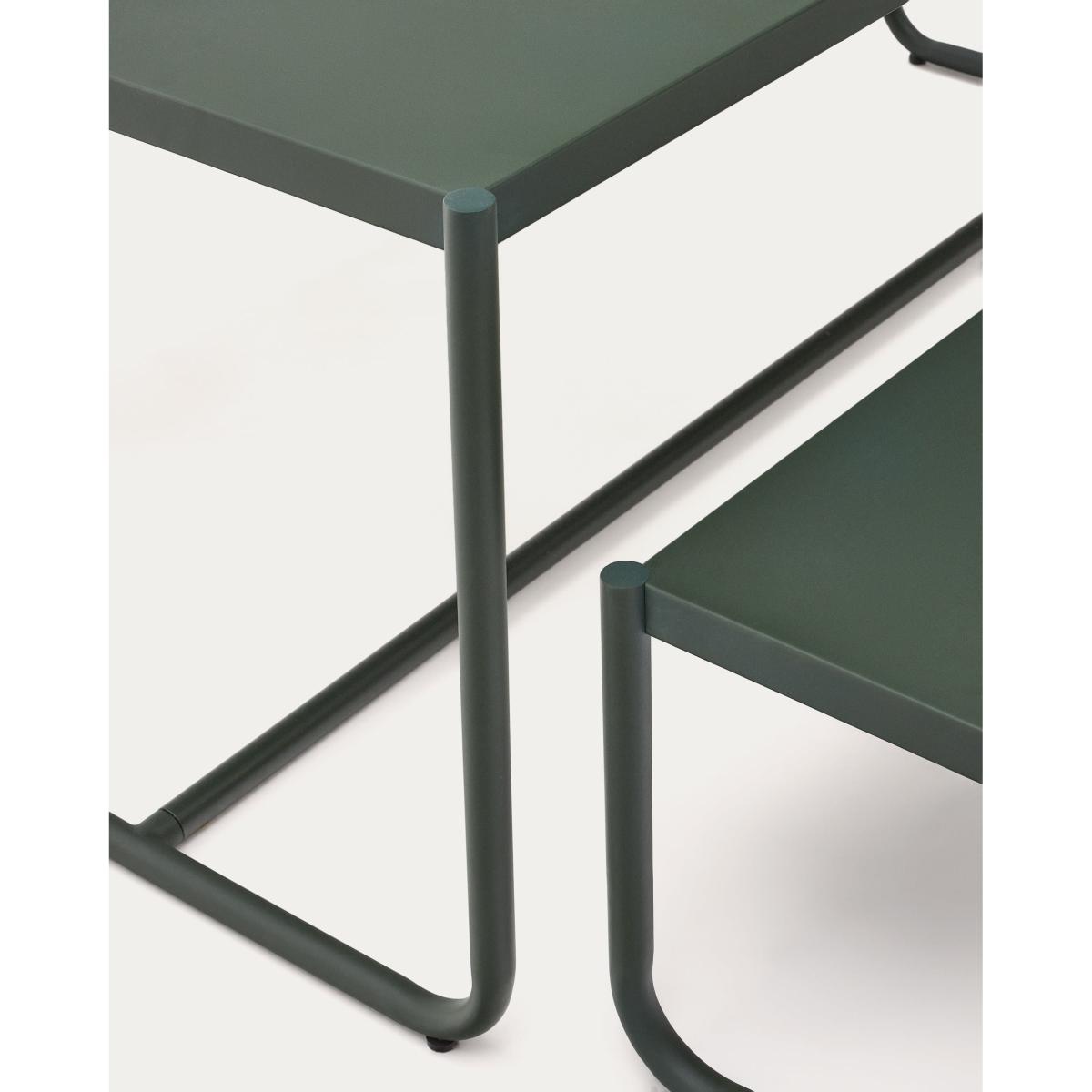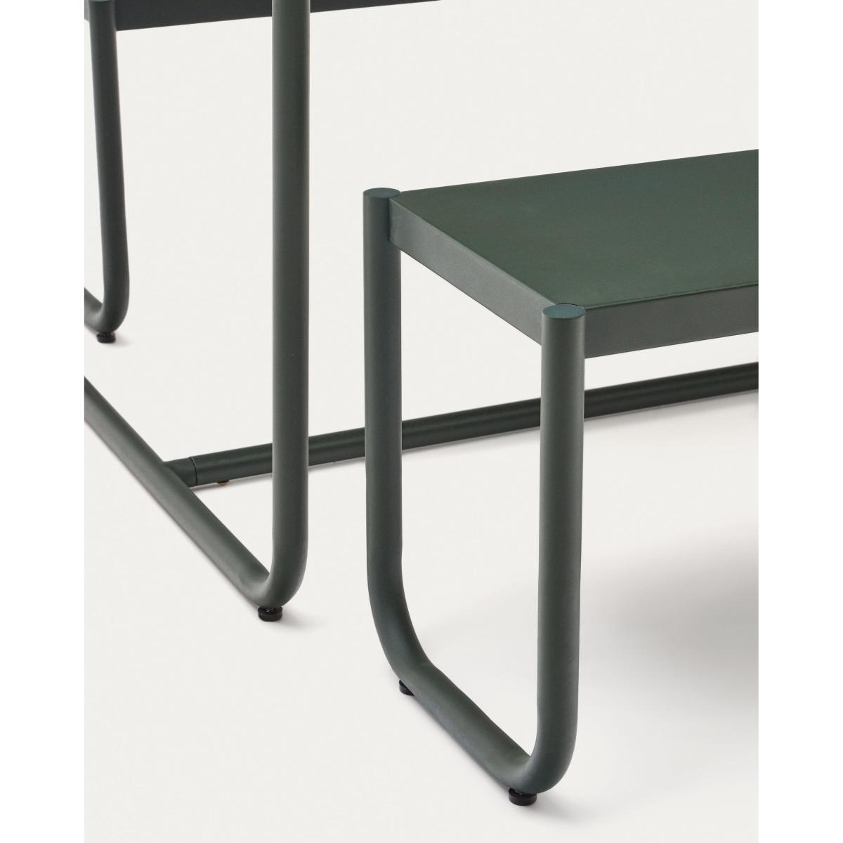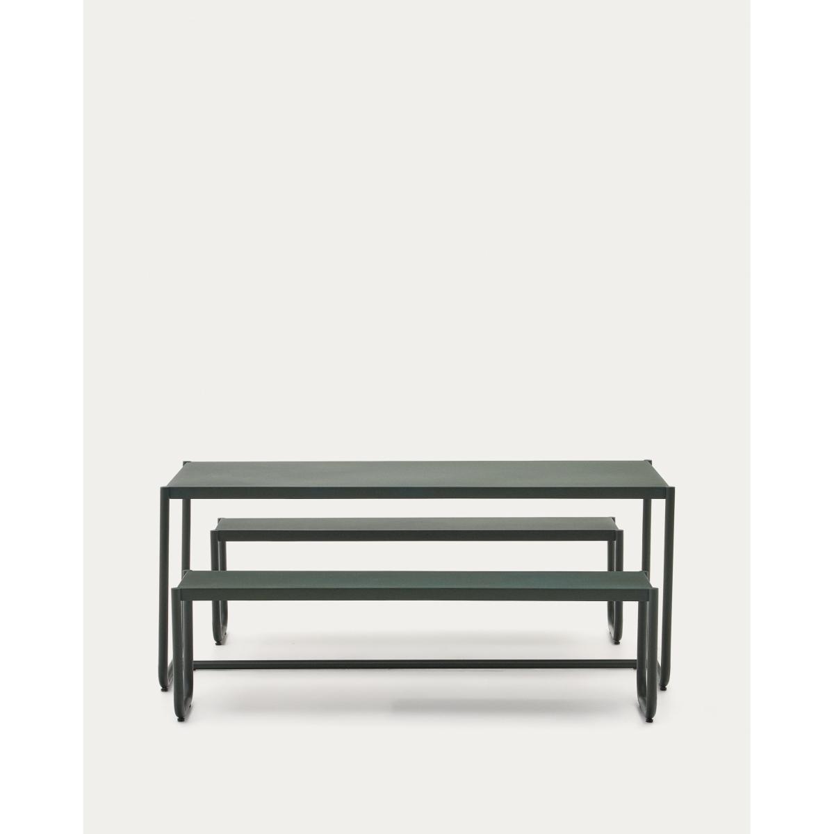 Sotil Set of 2 Benches and Galvanized Steel Table with Green Finish 183 x 83 cm