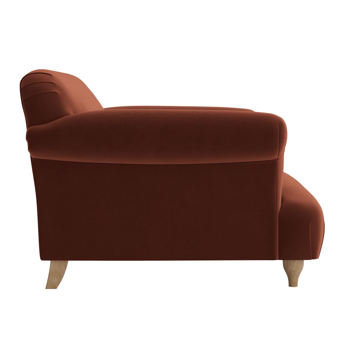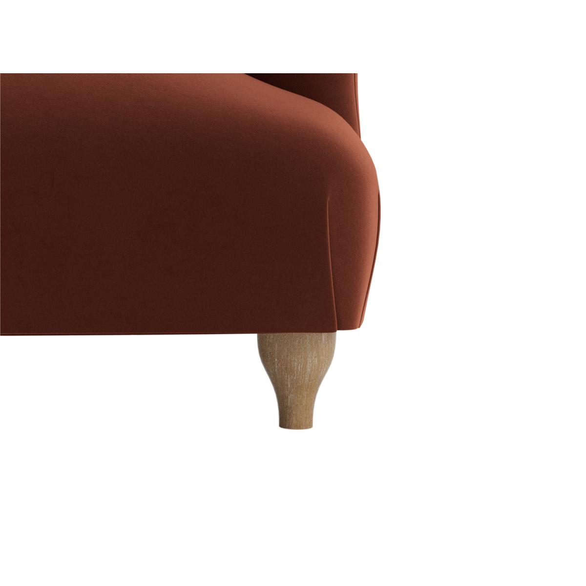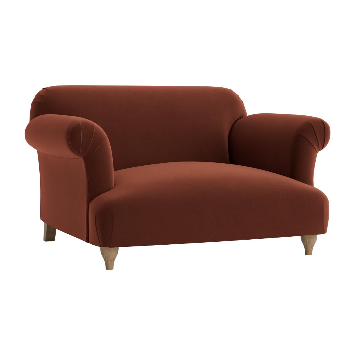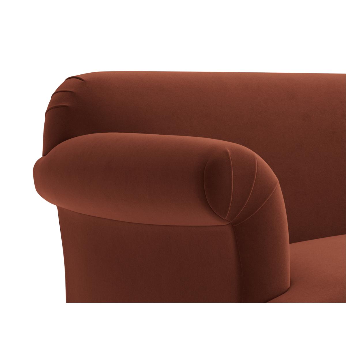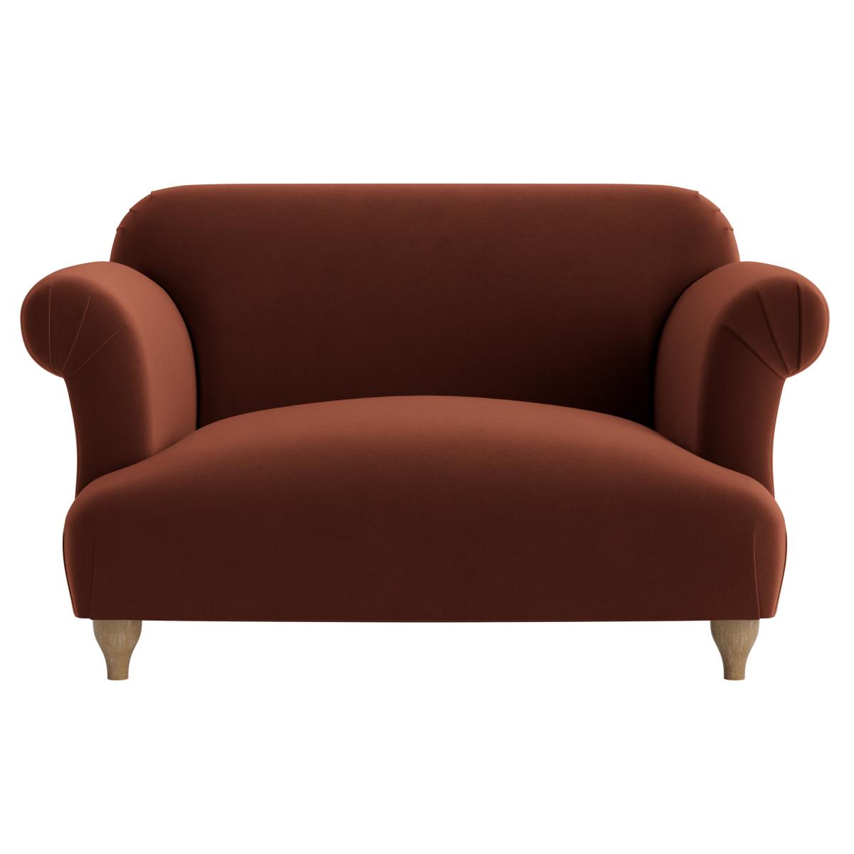I really love this little sofa for its vintage-inspired charm and inviting silhouette. It’s versatile enough to work well in both classic and contemporary interiors, adding warmth and character without overwhelming the space. The rich, warm tone works beautifully as a statement piece in neutral schemes, or paired with patterned cushions for a more eclectic feel. Practical styling tips include complementing it with textured throws or cosy cushions for added comfort, and placing it in a corner or near a window to create a welcoming nook. Its modest size makes it ideal for smaller living rooms, reading corners, or even a bedroom lounge area, making it a stylish yet functional choice.