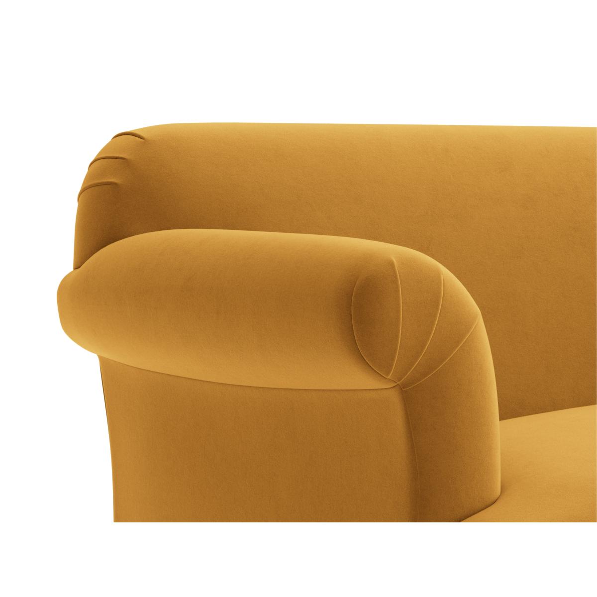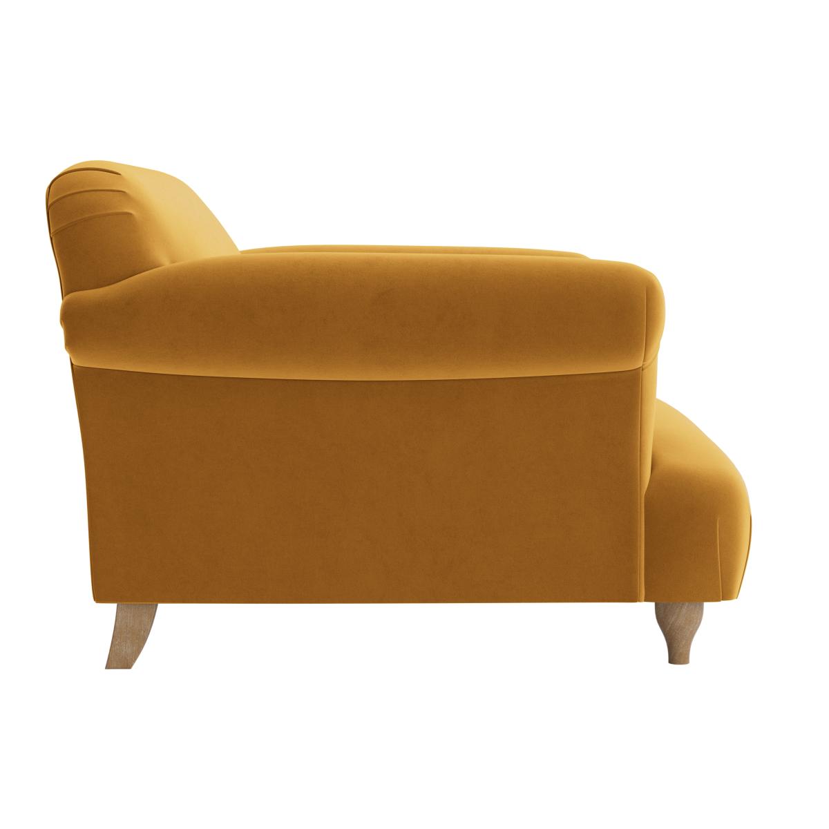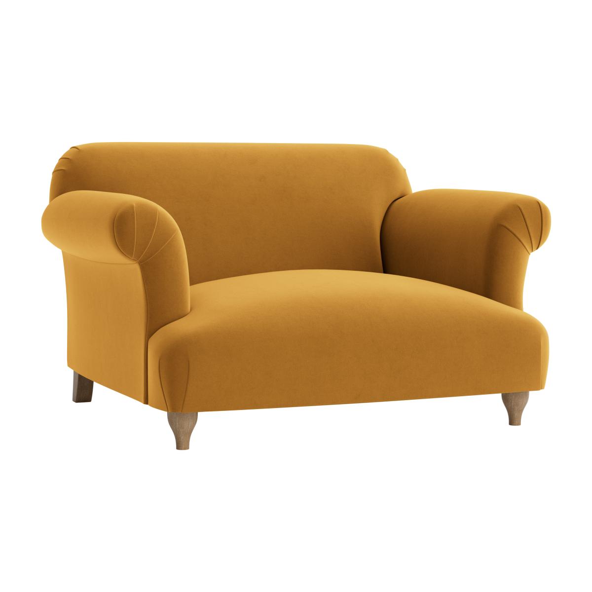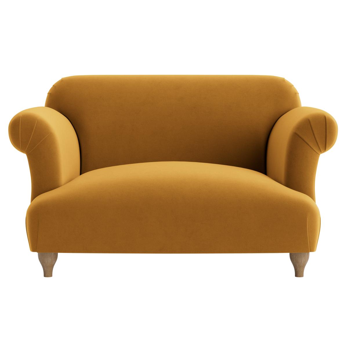 I love this little love seat because of its cosy, inviting shape and rich mustard tone, which instantly adds warmth to any room. It works particularly well in eclectic or contemporary interiors where a pop of colour can anchor a space. For styling, consider pairing it with neutral or patterned cushions to add texture and visual interest. It also suits small to medium living rooms, student flats or cosy reading nooks, providing comfort without overwhelming the space. When styling, keep the surrounding furniture simple and clean to let the cheerful colour and soft curves do the talking.