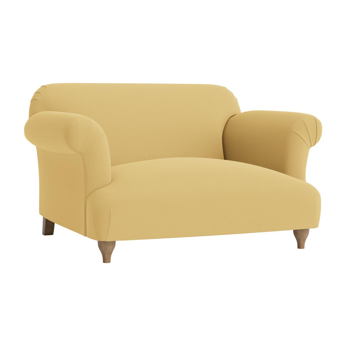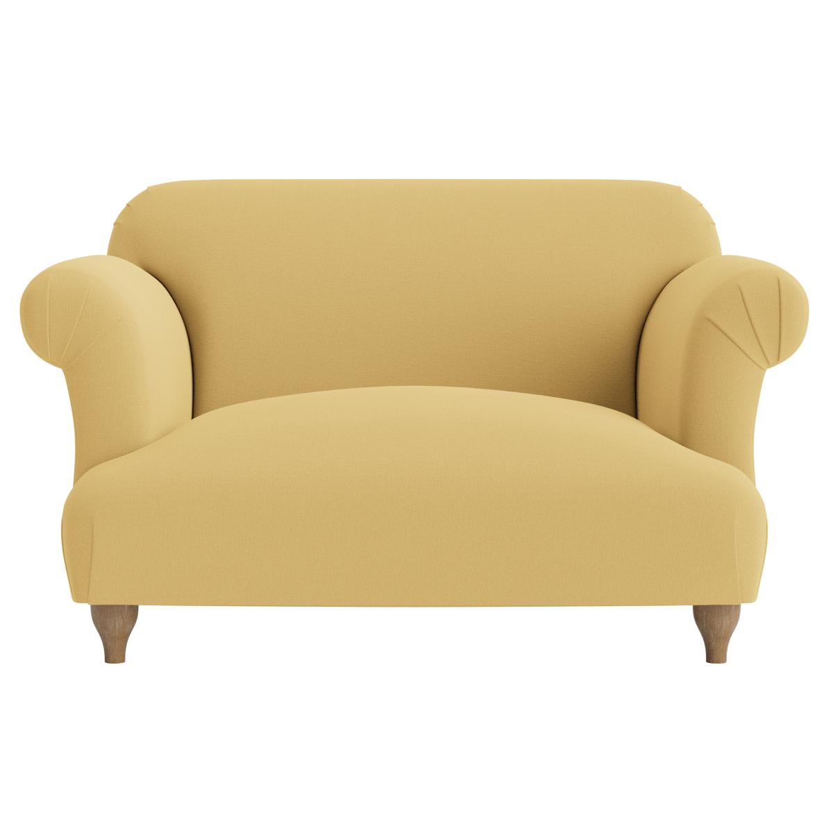 I love this sofa; its soft, rounded silhouette makes it a versatile piece that works well in both contemporary and classic interiors. Its cheerful yellow hue adds a pop of colour, making it an excellent statement piece or a tonal anchor in more neutral settings. For styling, consider pairing it with textured cushions and a cosy throw to enhance its inviting feel. It's perfect for cosy corners or small seating areas, especially in light-filled rooms. To keep it looking fresh, opt for understated accessories and a simple coffee table, allowing the sofa's playful shape and colour to do the talking.