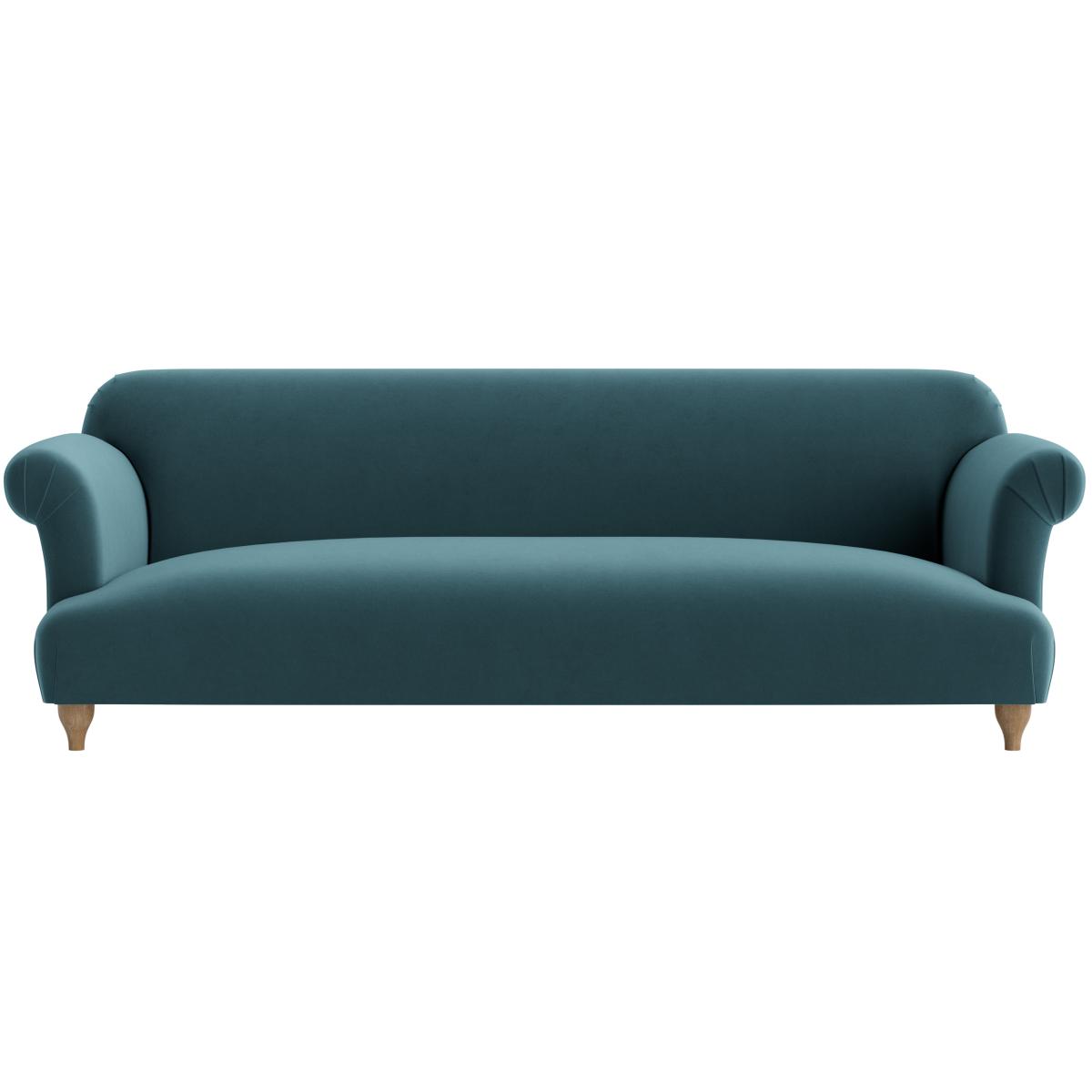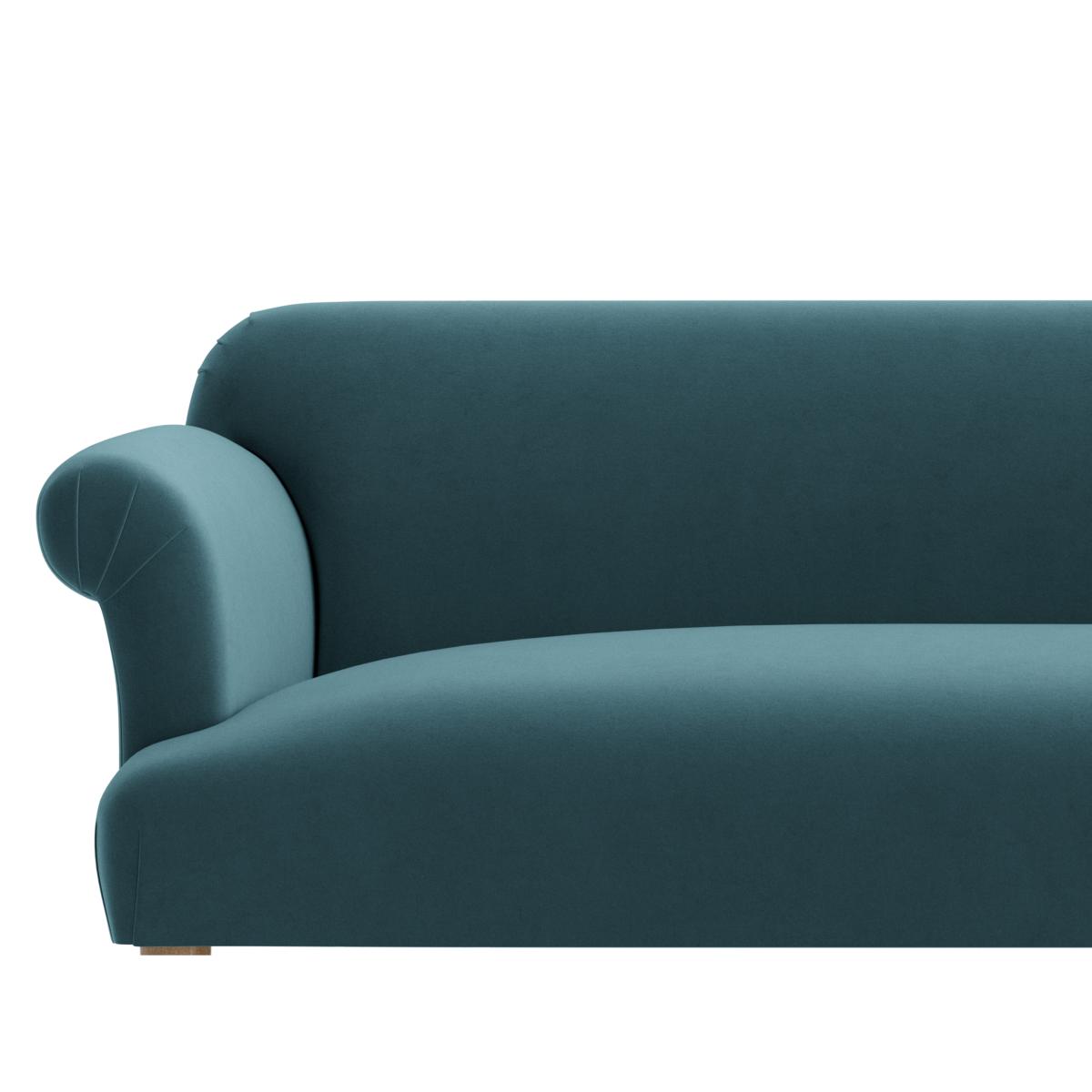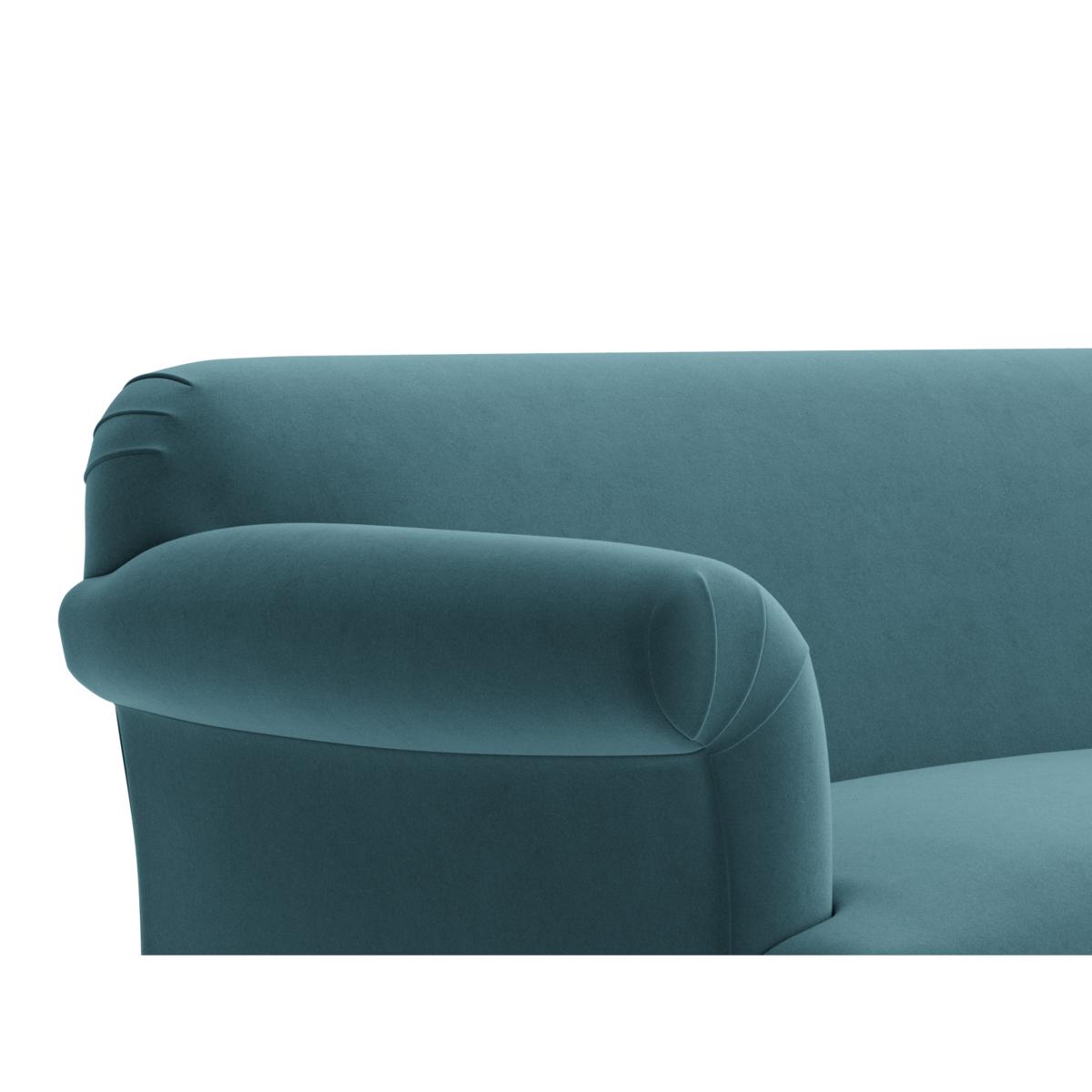 I love the sofa’s playful yet sophisticated silhouette, making it a versatile piece that can elevate both classic and contemporary interiors. Its rounded arms and plush form make it inviting and comfortable, ideal for creating a cosy living room. The rich teal hue adds a vibrant touch without overwhelming the space, so it works well as a statement piece in neutrally toned rooms or as a colour pop in more colourful schemes. Practical styling tips include pairing it with mid-century inspired timber coffee tables and textured cushions to enhance its charm, or accessorising with patterned rugs and artwork to deepen the overall aesthetic. It’s perfect for both laid-back family rooms and more polished, stylish lounges.