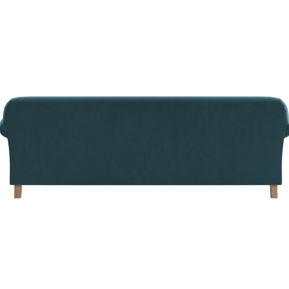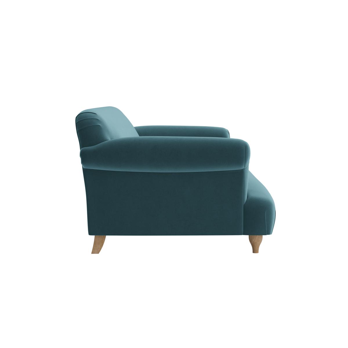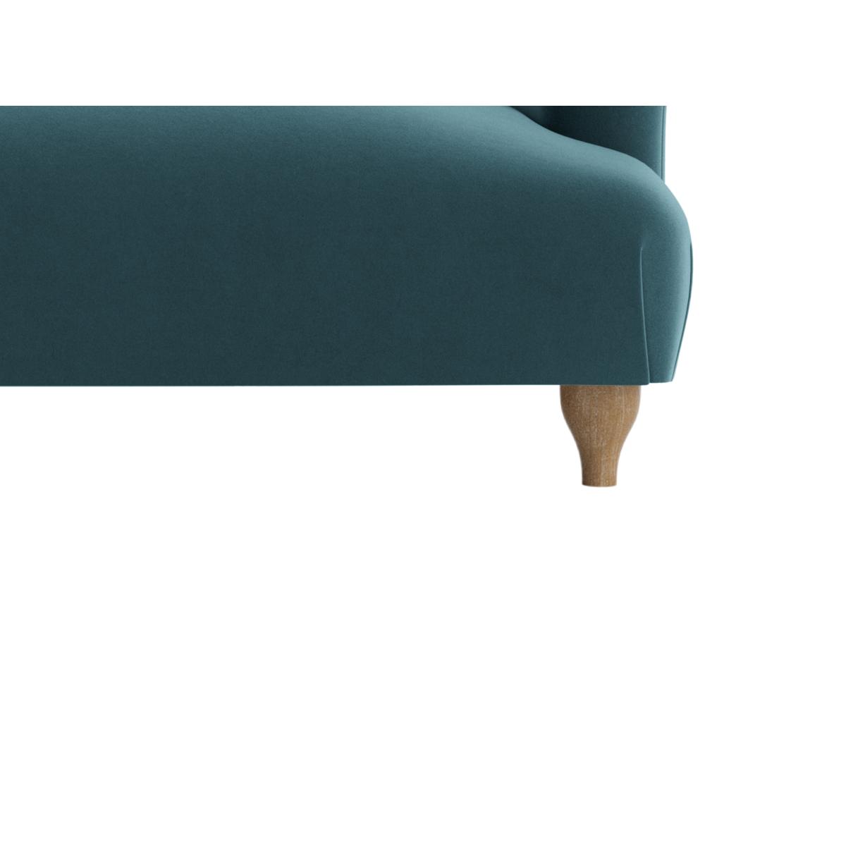 I love the sofa’s playful yet sophisticated silhouette, making it a versatile piece that can elevate both classic and contemporary interiors. Its rounded arms and plush form make it inviting and comfortable, ideal for creating a cosy living room. The rich teal hue adds a vibrant touch without overwhelming the space, so it works well as a statement piece in neutrally toned rooms or as a colour pop in more colourful schemes. Practical styling tips include pairing it with mid-century inspired timber coffee tables and textured cushions to enhance its charm, or accessorising with patterned rugs and artwork to deepen the overall aesthetic. It’s perfect for both laid-back family rooms and more polished, stylish lounges.
