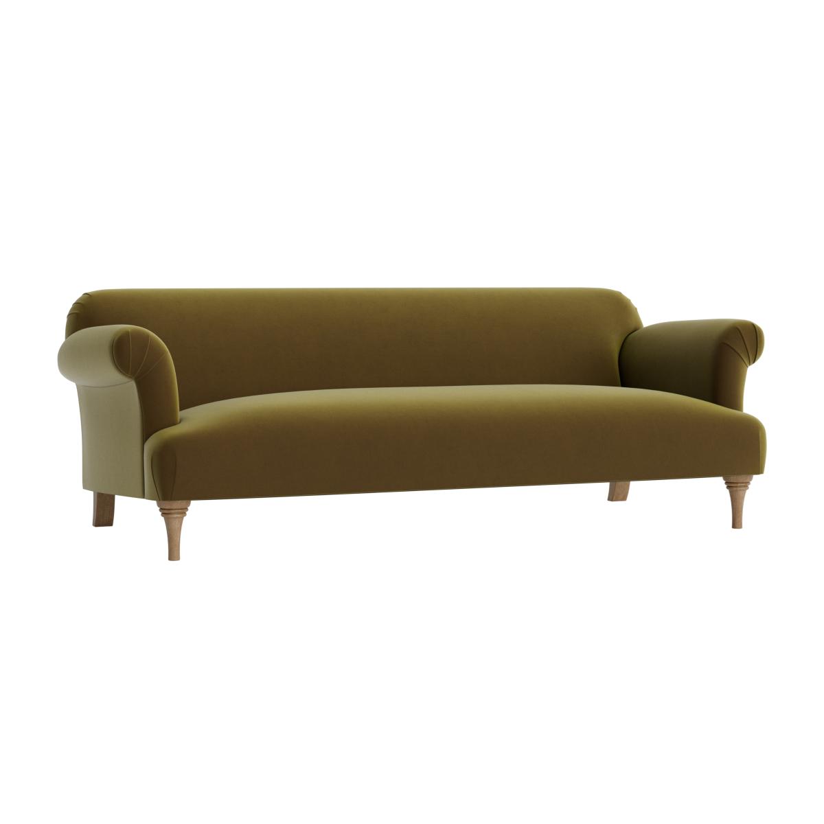 I love the plush, inviting look of this sofa, making it a versatile piece for various interiors. Its soft, curving silhouette works particularly well in contemporary or mid-century styled spaces, where its understated elegance can shine without overpowering the room. For styling, consider pairing it with textured cushions in neutral or complementary colours to add depth, or contrasting throws for a cosy touch. Practical tips include placing it in a well-lit area to highlight its shape and fabric, and pairing it with a simple side table or floor lamp to create a welcoming, functional seating corner. Its calm, muted tone makes it adaptable to both minimalist and more eclectic schemes, making it a smart choice for a range of interiors.