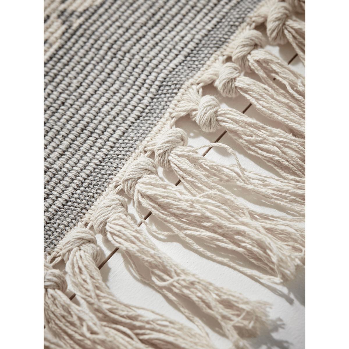 The traditional quatrefoil design across the surface of our monochrome rug creates an elegant pattern, a gentle decoration to an otherwise pared-back rug. With generous tassels at each short end, this is the perfect decorative rug for any serene toned bedroom.