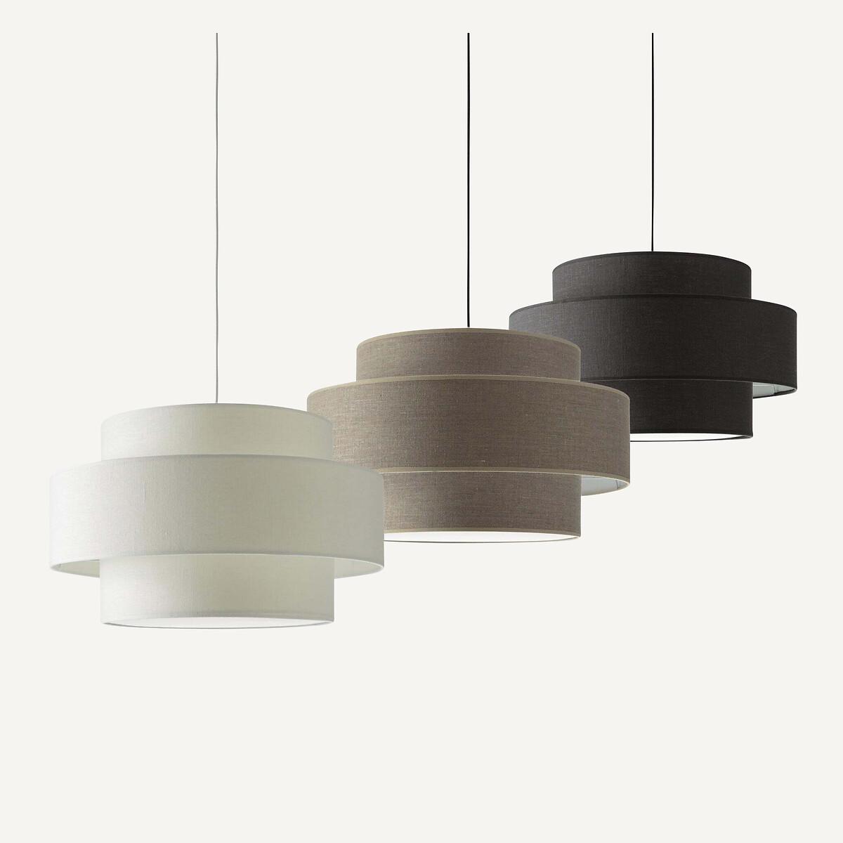 Souko is composed of 2 cylinders covered with linen and a diffuser for a soft light and a graphic effect. Product Details • Steel frame • Pure linen coating • Electrical cable not included. For suspension use, compatible with our Sevigni electrical cable or Luce socket suspension, both sold on this site. Additional Information • Made in France. Dimensions • Diameter 60cm x Height 26cm • Weight: 1kg • Made in France. Dimensions and weight of parcel • 61 x 61 x 48cm • 1kg