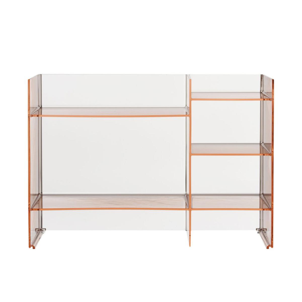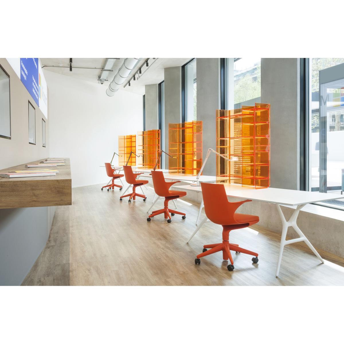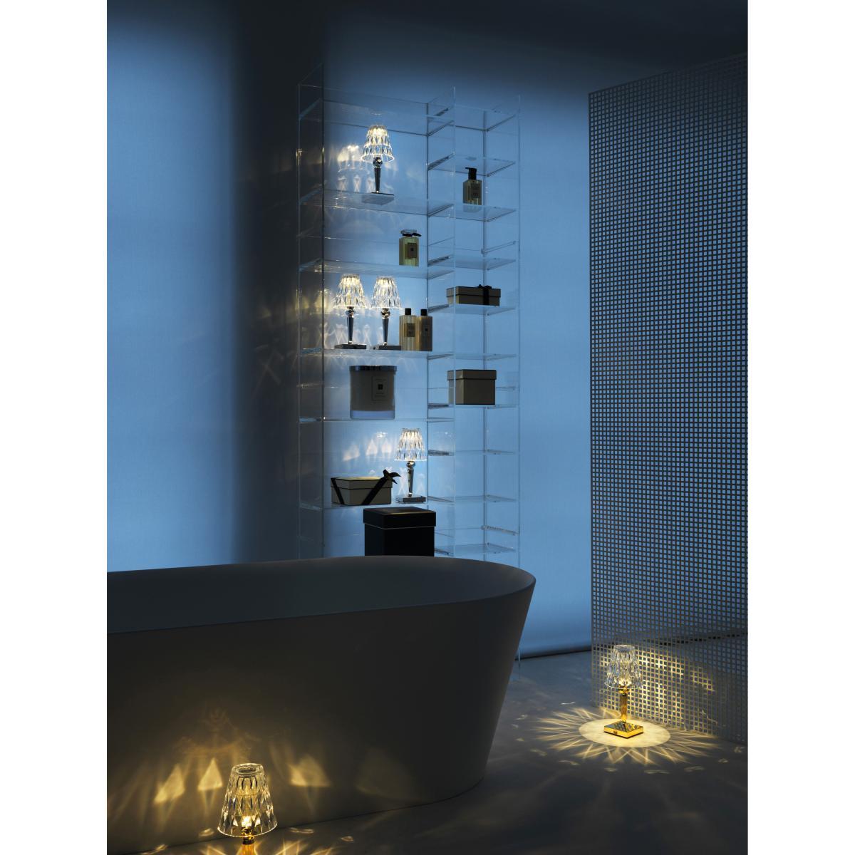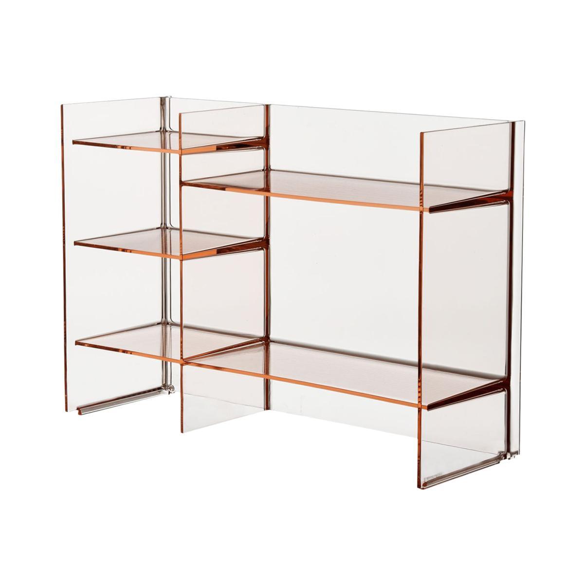 "Kartell now floods our bathrooms with an excellent collection of accessories signed by the Italian designers and architects, Ludovica & Roberto Palomba. A whole line of objects and small furniture that combine transparency and colours, refined and functional lines, refinement and simplicity. Made in PMMA, Sound-Rack furniture integrates well in all rooms by playing the transparency card. This simple and communicative shaped storage unit can be set up and live anywhere. The different compartments allow you to efficiently store and organise your things. Sound-Rack will accommodate towels and beauty products in the bathroom, clothes and shoes in the bedroom or even pots, plates and spices in the kitchen. Sound-Rack is stackable: you can put two pieces of furniture on top of each other so as to create elegant, graphic and chromatic compositions. The "Kartell by Laufen" collection is the fruit of the collaboration between the Kartell brand and the Swiss house Laufen, ceramics specialist. Under the artistic direction of Ludovica + Roberto Palomba, this bathroom project is very complete and uses of both companies' expertise. The patented ceramic sinks and bathtubs find their counterpoint in the multicoloured light from the plastic accessories. ".