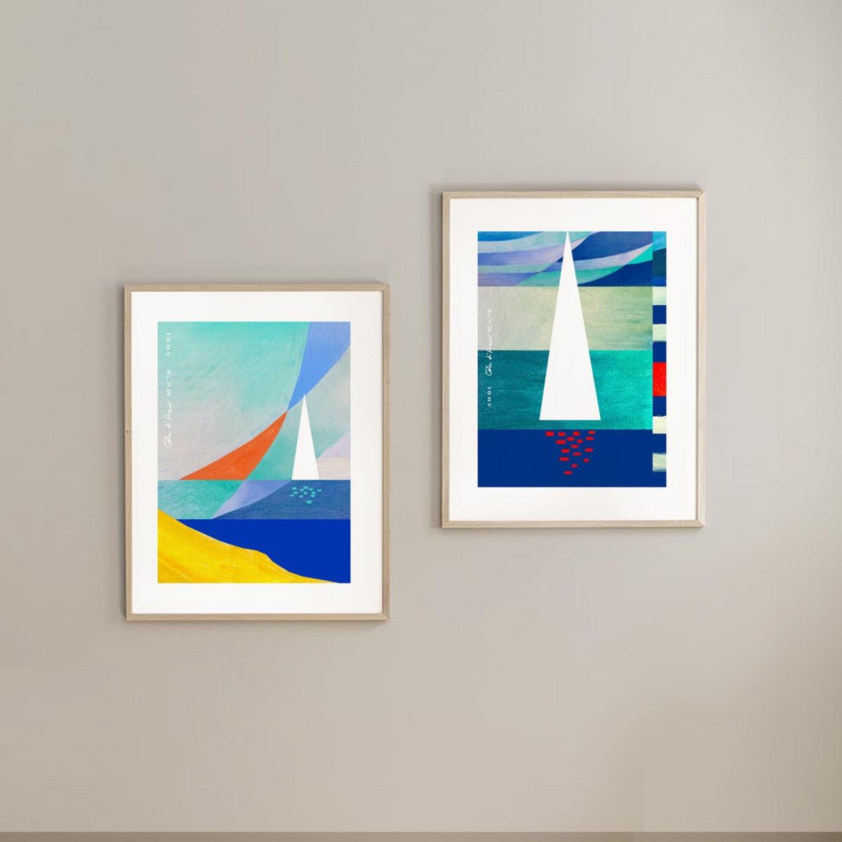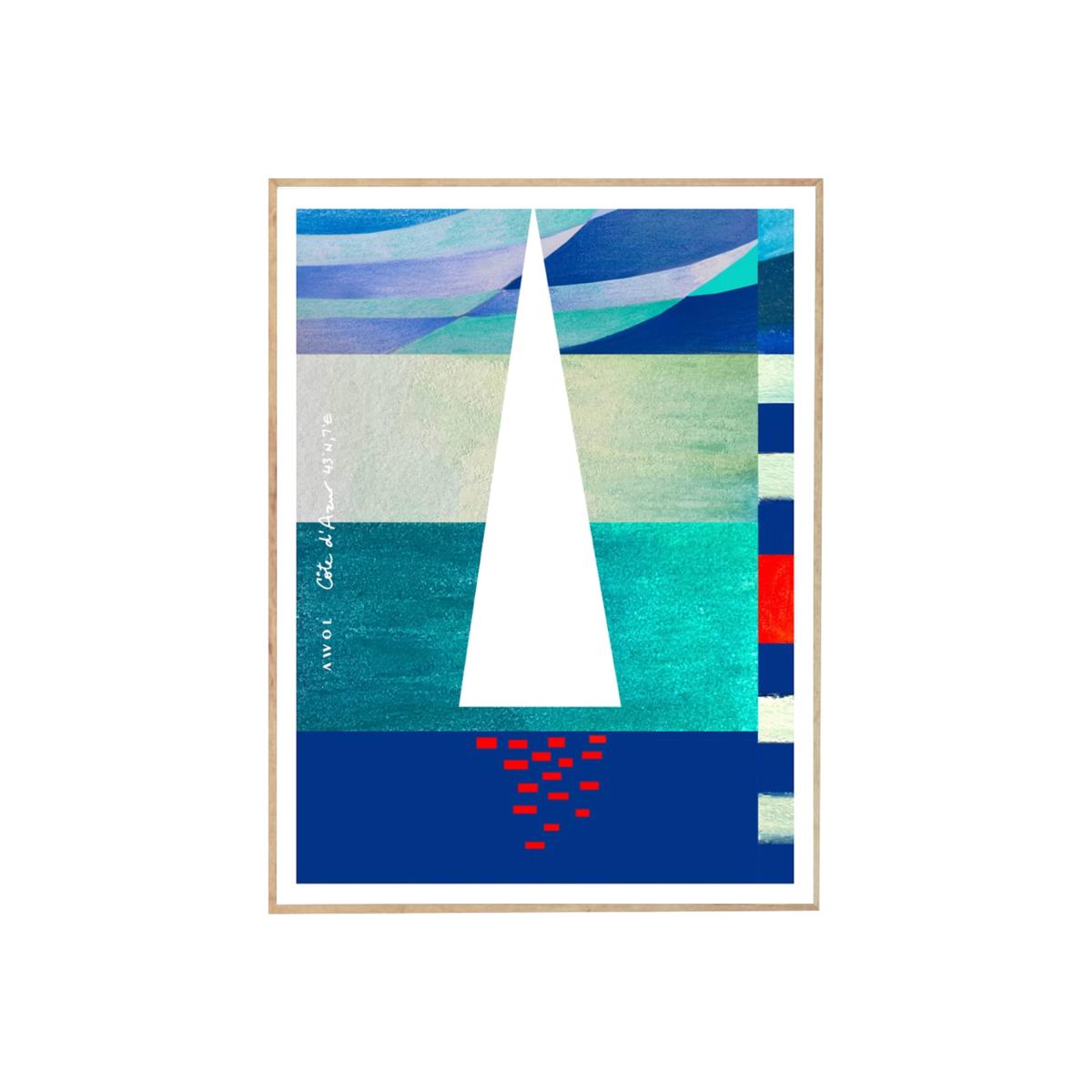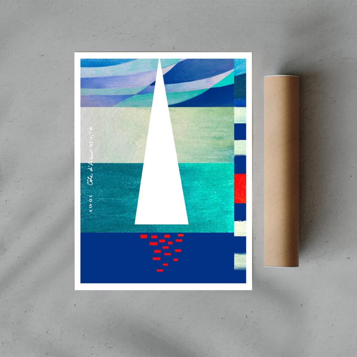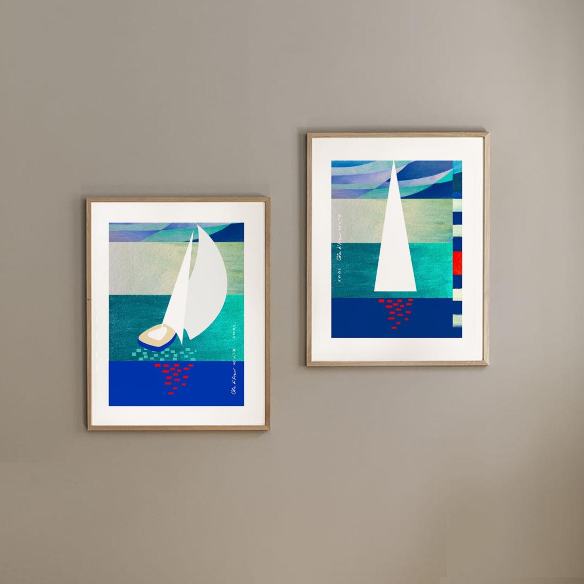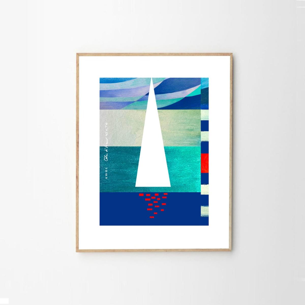 This blue, white and red, modern and graphic art print with a sailboat at sunset on the Mediterranean sea adds a touch of nautical vibes and South of France mood to any space. The French Riviera illustrated art print collection is inspired by the artist’s travels along the Côte d'Azur. This seaside poster will add a bold, colourful and contemporary touch to your home décor. Mix and match multiple art prints from the French Riviera Collection to create an eclectic travel art wall and add a wanderlust accent to any interior. Hand illustrated using pastels, watercolours and acrylic paint, then digitally transferred onto superior quality Canadian Cougar paper with a matte finish. Sold unframed.