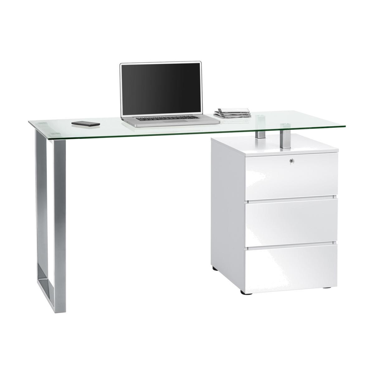 Are you looking for home office furniture that’s durable, hardwearing, modern and superbly stylish – for a fantastic value price? The South Street collection ticks all the boxes. In a wide choice of styles, finishes and sizes designed to fit beautifully into your study, home office or even your living room. Made in Germany from high quality materials including glass, aluminium and steel. A Furniture Village online exclusive. ** This desk is a self assembly item **. White high gloss and chrome computer desk. 8mm safety glass top. Practical design with inbuilt pedestal storage. Square chrome plated metal leg. White high gloss scratch proof melamine coating. Protective, durable thermoplastic edging. 1 lockable drawer. Shelved cupboard behind door. Easy, quick assembly. A Furniture Village online exclusive. WARNING!. Furniture can tip over unexpectedly and cause injury. This item shall be fixed to a wall using the anti-tip kit provided with the furniture. Be sure to use the correct wall fixings suitable for the walls in your home.