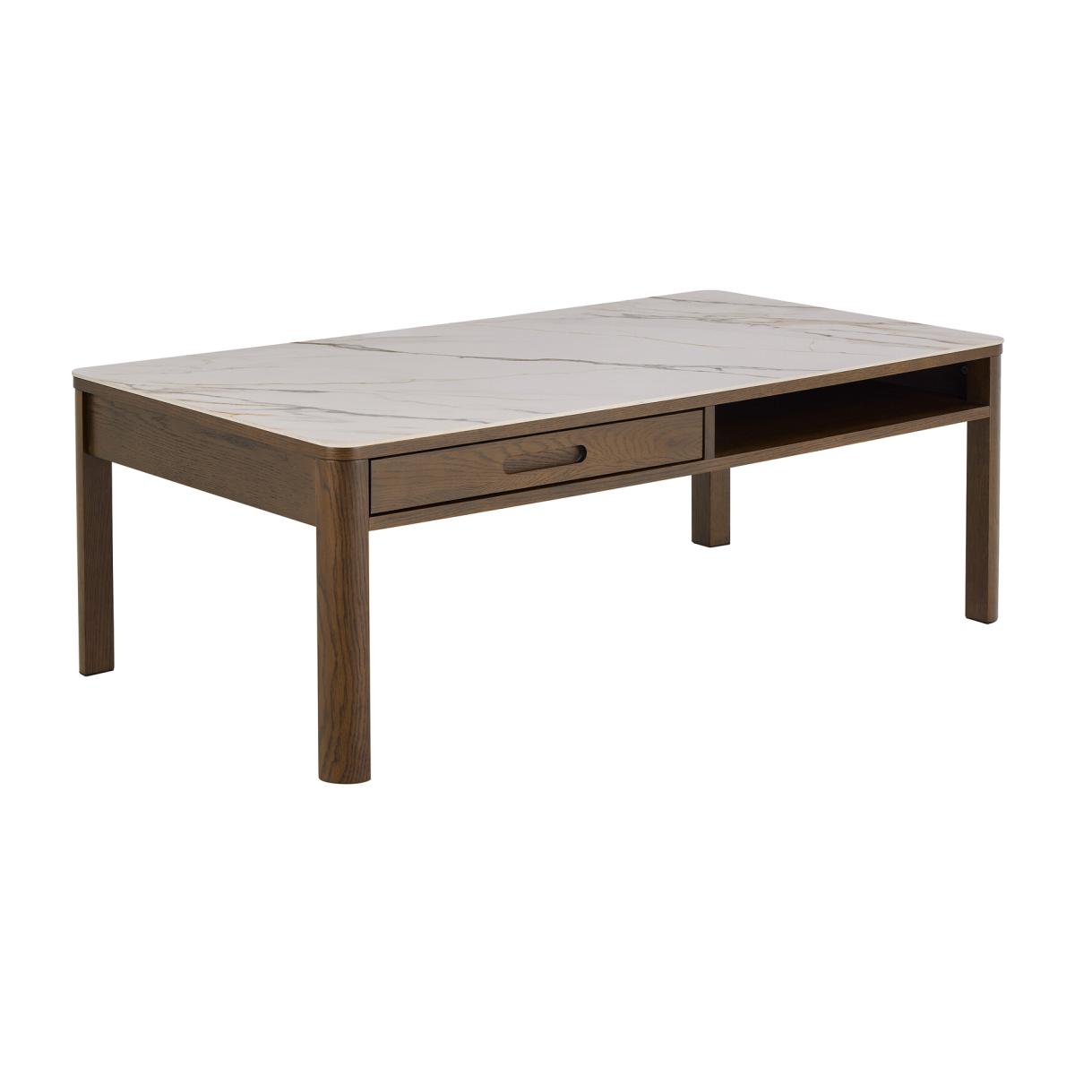 Transform your game night into a stylish affair with the Southampton Ceramic Coffee Table. With its cream polished ceramic top featuring elegant veining reminiscent of marble, paired with a smoked oak veneer base, this table is the perfect blend of sophistication and functionality. It serves as an eye-catching centrepiece, ideal for holding drinks, snacks, and all your favourite board games. The included drawer and shelf provide ample space for storage and display, adding style and convenience. Elevate your gatherings with a touch of luxury that enhances every moment spent with friends.
