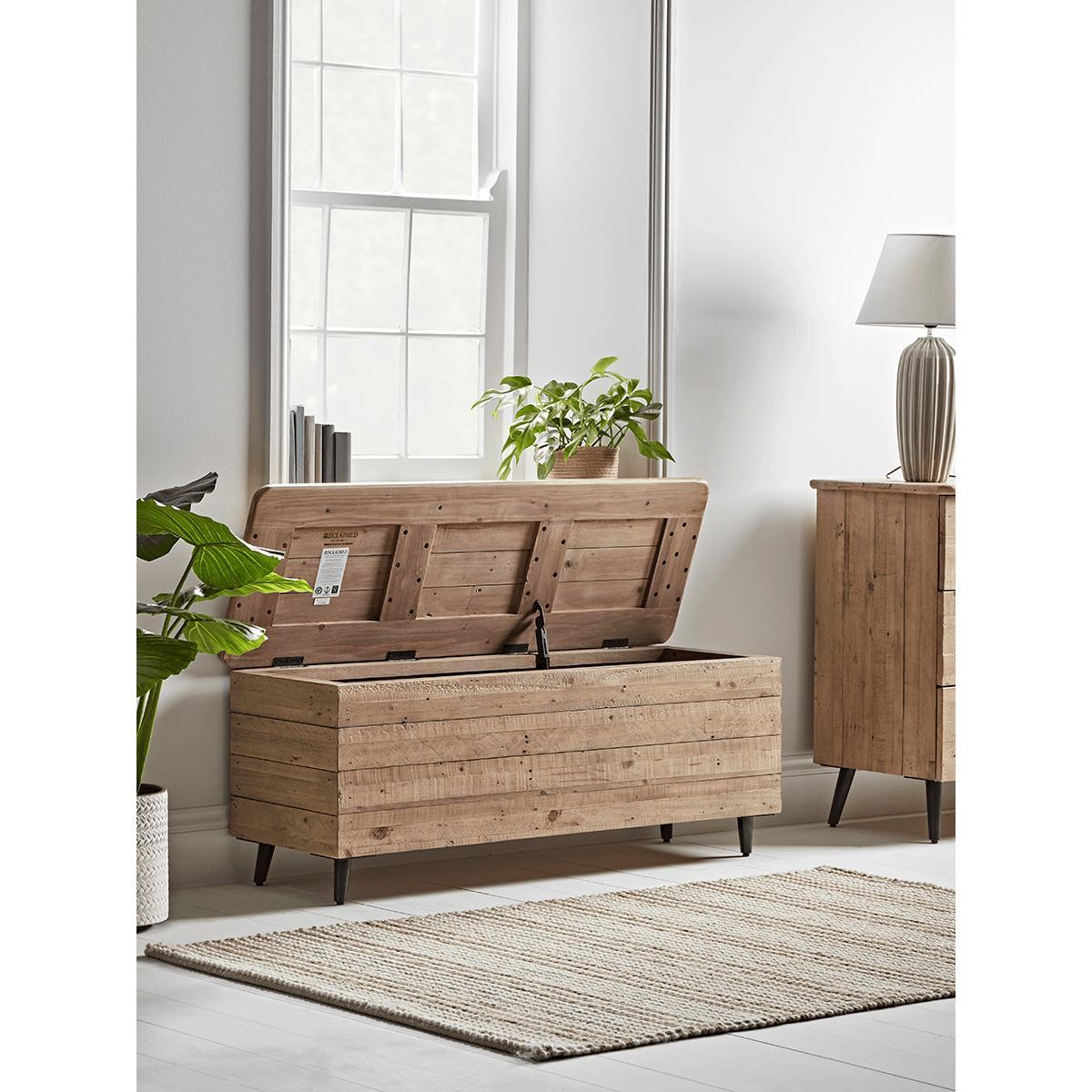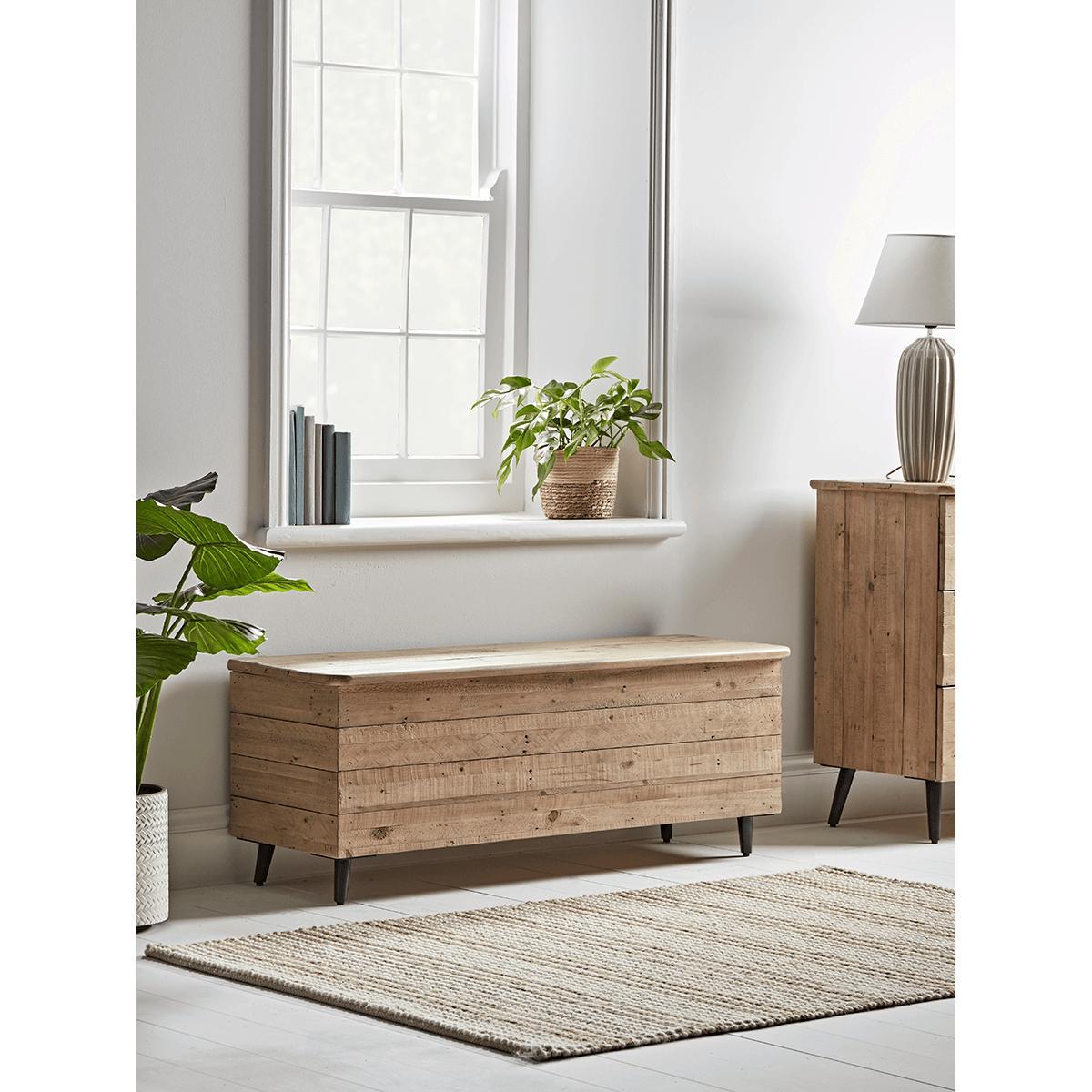 The design and material of our Southwold Storage Bench displays all the beauty of simple rustic style. The natural finish of the wood is raw in tone but tactfully smooth, and combined with the black metal legs communicates an authentic homely feel. With a hinged lid and a generous interior, this bench will provide ample storage for the hallway or bedroom. Discover more from our. Southwold. Range.