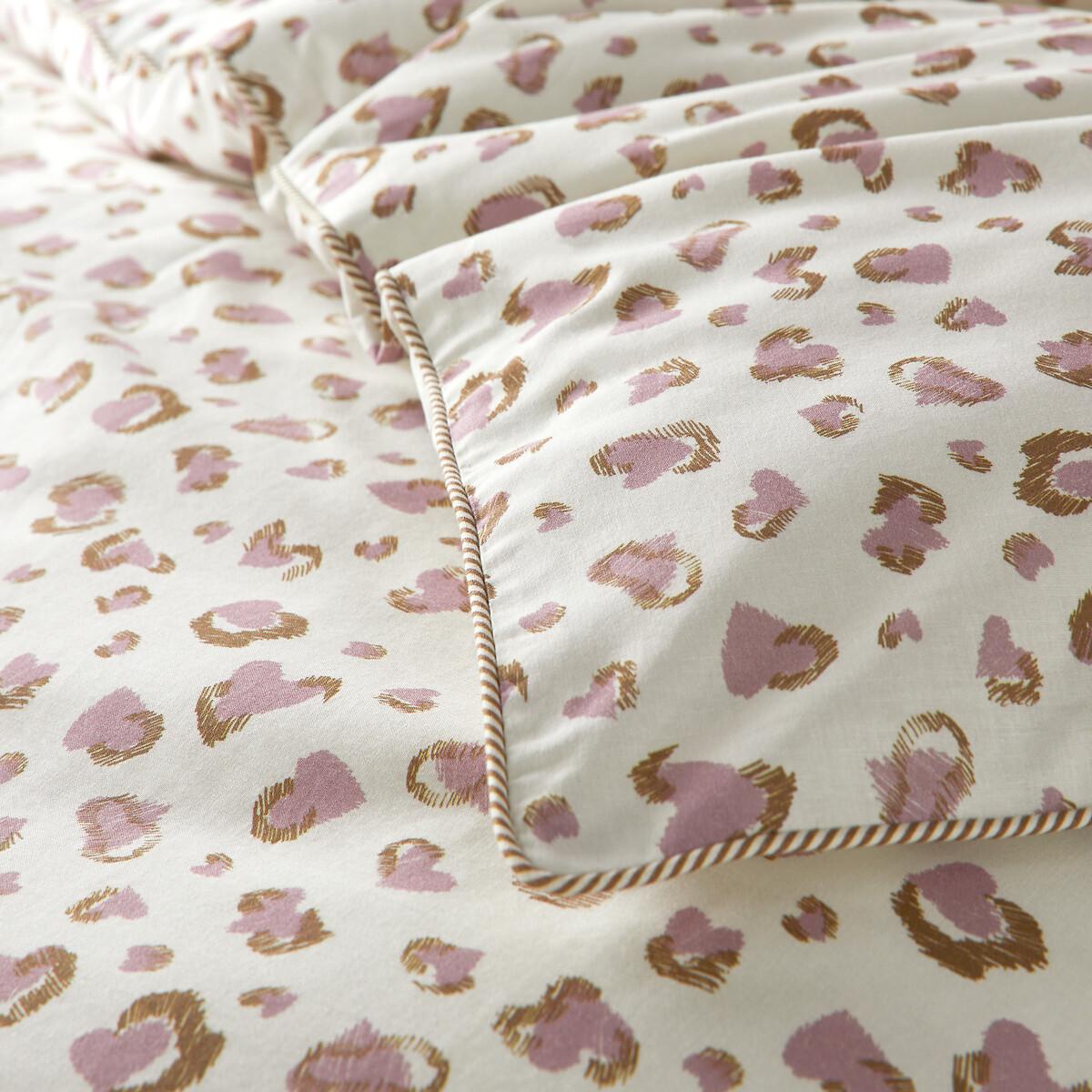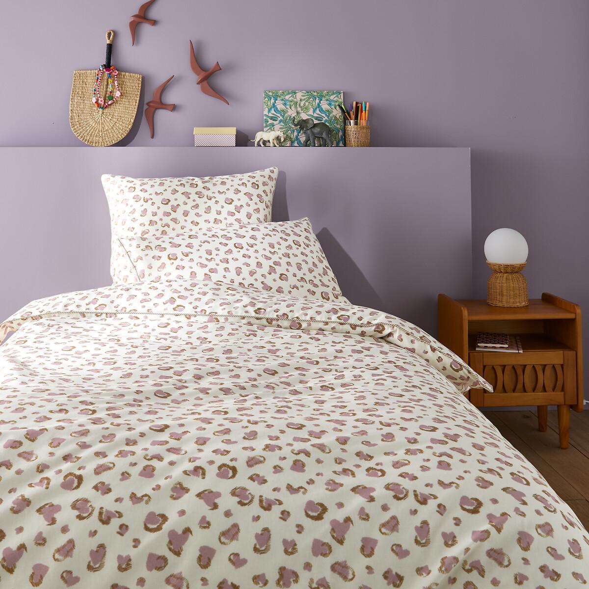 In the African savannah, is it the trees that display speckled, variegated patterns? No, it's Mr. Leopard who is simply taking a nap!Cotton is part of our daily lives. We love it for its suppleness and softness. Easy Care, it is ideal for the beds of young and old alike!Product Details • 100% cotton • Contains 30% recycled cotton • 144 thread count • Patterned both sides in leopard print • Striped bias finish • Straight buttoned hem Care Advice • Machine washable at 60°C • By washing your laundry at 40°C instead of 60°C, you limit energy consumption. Dimensions • 140 x 150cm: Adjustable bed • 140 x 200cm: Single • 200 x 200cm: Double • Recycled cotton. Using recycled cotton is all about conserving resources and reducing waste.
