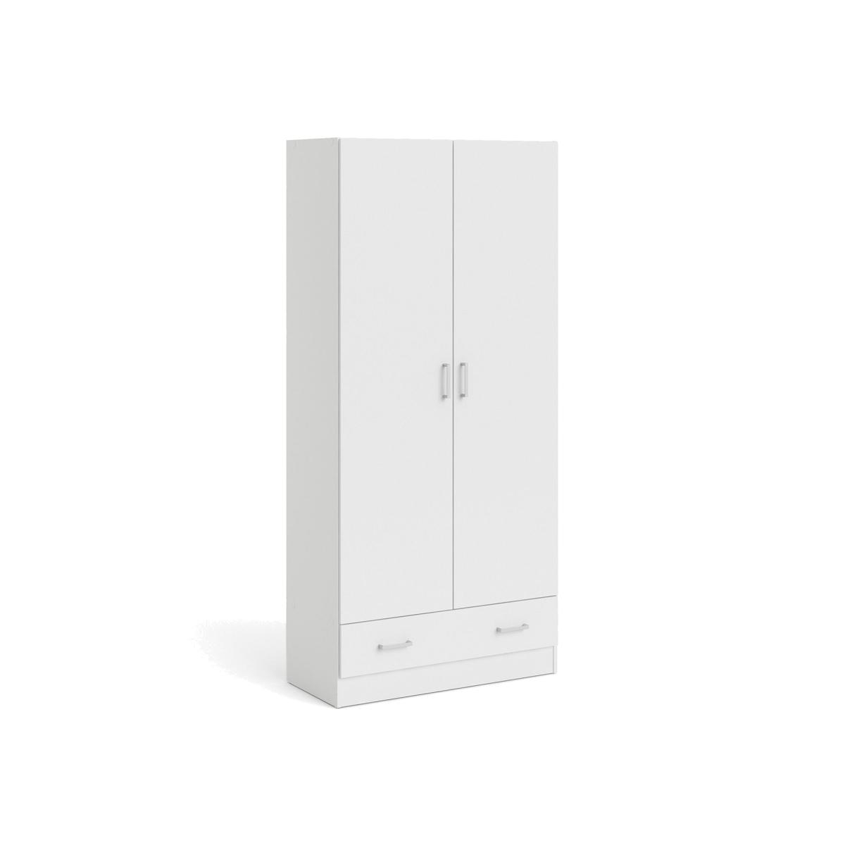 Organise your space with this Space 2 Door Wardrobe. Stylish and functional, this wardrobe provides ample storage area behind the two doors and a drawer at the bottom. It is crafted using laminated board and finished in an easy-to-clean and fade-resistant finish for lasting use. Practically designed, it is ideal for creating useful storage while taking up a minimal footprint in your room.