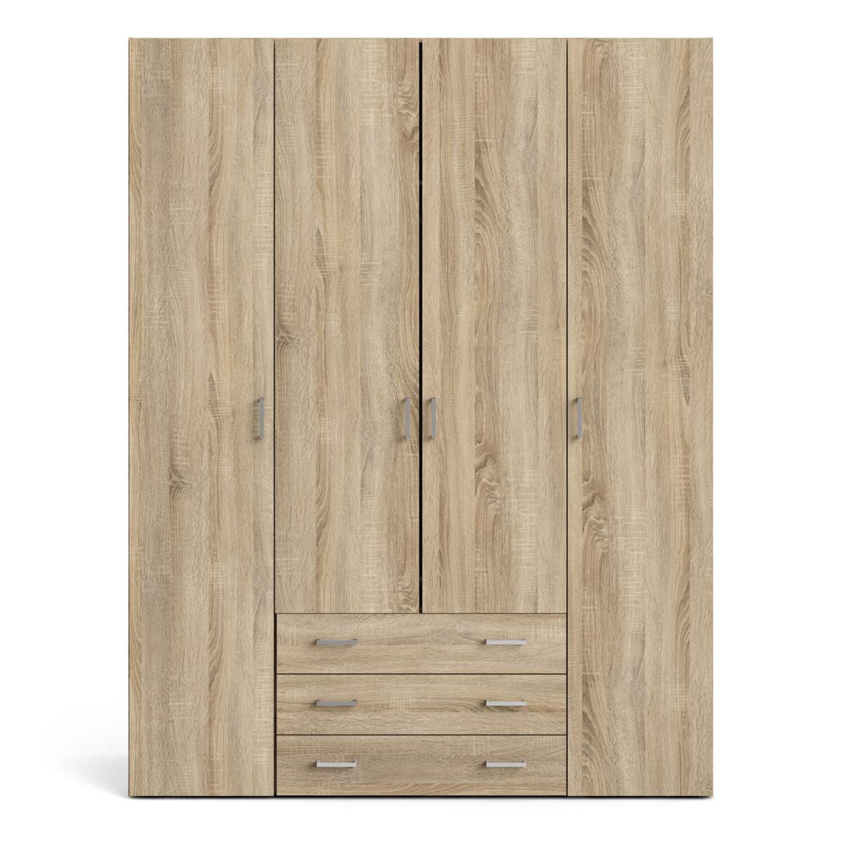 Space 4-Door 3-Drawer Wardrobe - Oak