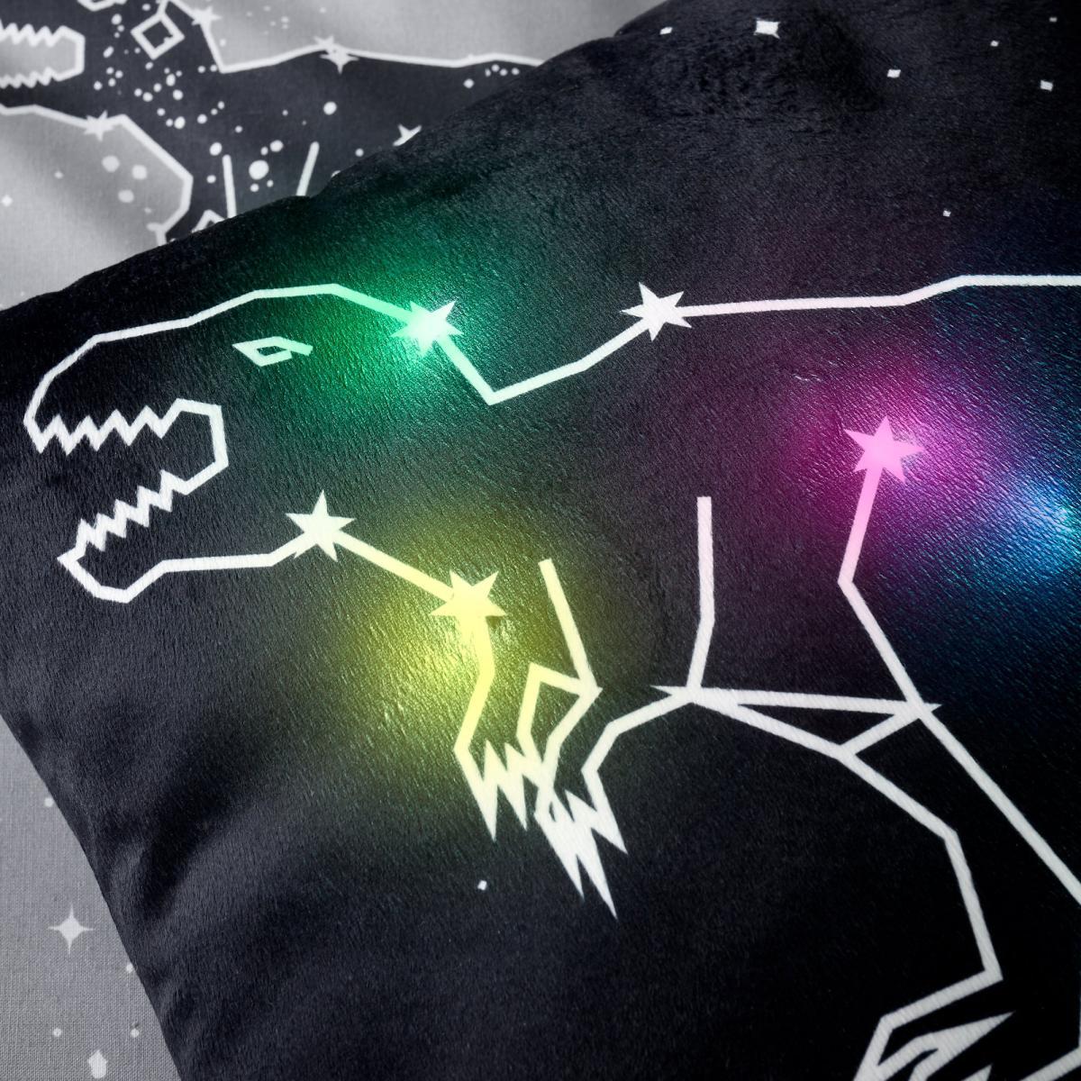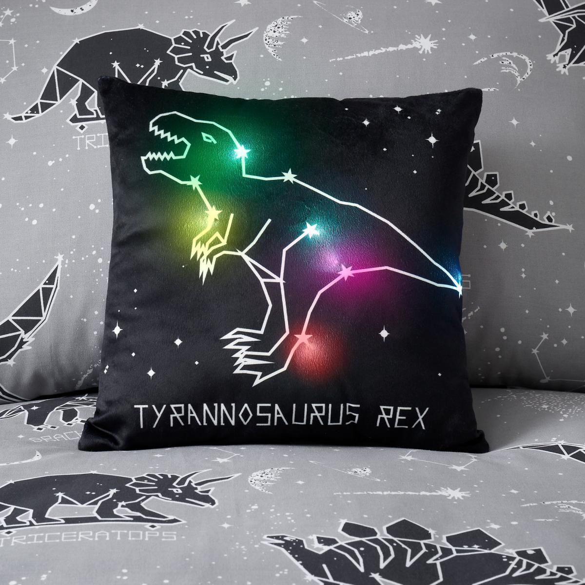 Space Dinosaur Black LED Light Up Cushion Black and White