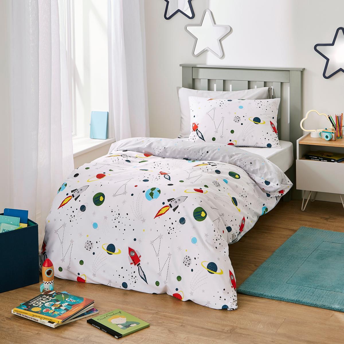 Space Rockets Single Duvet Cover and Pillowcase Set MultiColoured