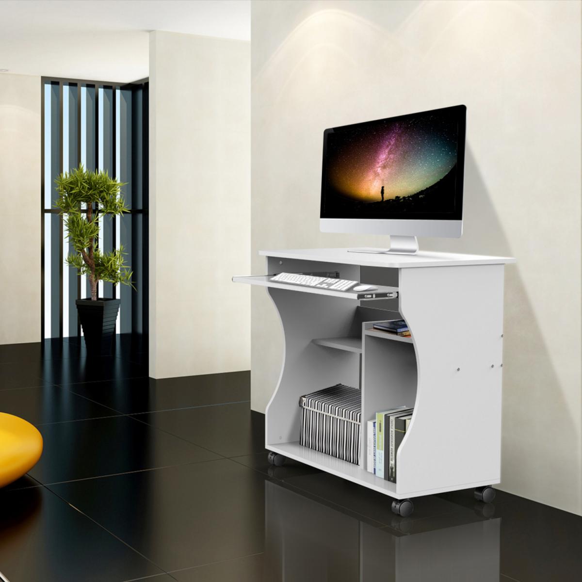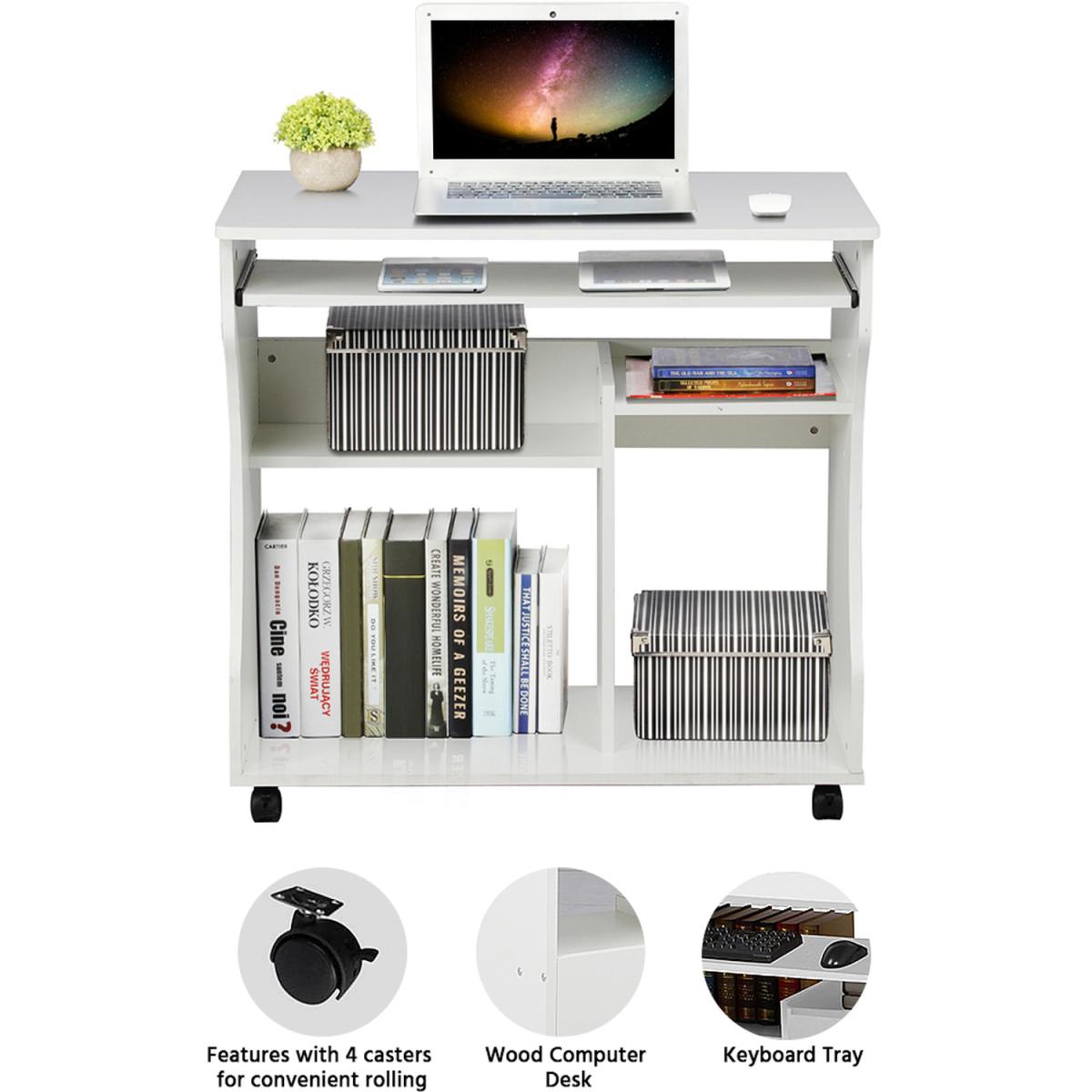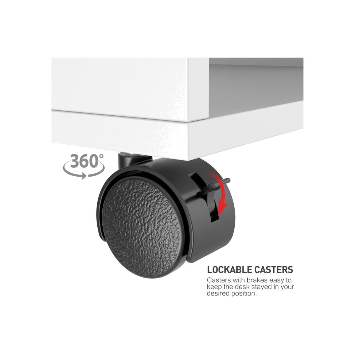 This computer desk is made of strong and high-quality MDF material, sturdy and durable to use. It comes with four casters for mobility, and two of them are lockable for stability. It also features a smooth pull-out sliding keyboard tray, which is convenient to use. The stylish and fashionable design perfectly decorates your home and also adds a touch of elegant charm to your study room. It offers ample space for home or office daily use, making your books and stuff neat and tidy. The bottom shelf can be used as a CPU stand or audio platform. You can easily access your objects from both sides. It comes flat-packed with detailed instructions for quick easy assembly.