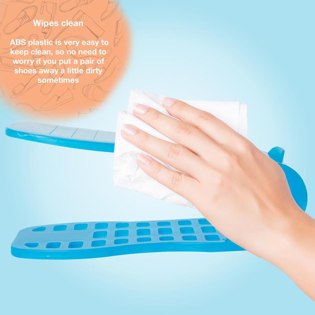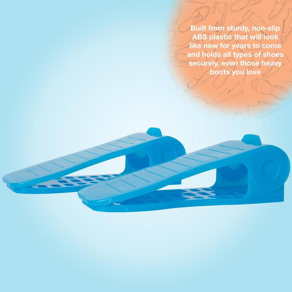 Haven Space Saver Standard Size Shoe Organizer These space-optimizing shoe Organizers will help you to double your shoe storage space in a snap. Safe and skip proof, uneasy to fall off, multi Colors, beautiful and durable. One size fits most standard shoe sizes. Ideal for small spaces dorm rooms, children closets, small closets. Anywhere you want to organize your shoes and still have plenty of space left over, multi Colors, are beautiful and durable. Snap joint on the bottom, the shoes would not fall off easily. Double your storage capacity with the best possible space-saving solution for your shoes in the bedroom, closet, and wardrobe. Stack all your shoes with this modern and fun design. With a simple yet smart design, a lot of organizers can bid farewell to a jumble of shoes in a snap and find the perfect pair instantly. Very easy to clean, just use water and soap. Sturdy and durable material, non-slip ABS plastic, strong enough to support the weight of your shoes. You can save space for all your shoe pairs on existing shelves, cabinets, decks, or on the floor. Can be a great gift for your family, parents, or friends who like to keep their living area tidy or like to collect shoes.
