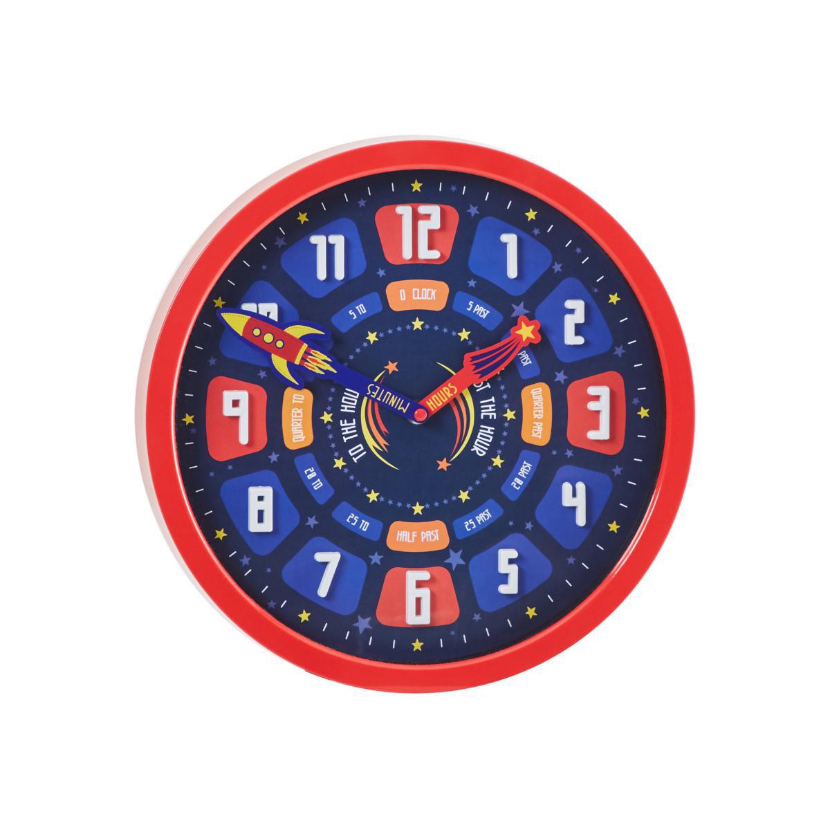 I love this space-themed clock for its bold colours and playful design, making it a real statement piece in any room. It works particularly well in kids’ bedrooms, playrooms, or creative spaces where colour and fun are key. To style it effectively, consider pairing it with neutral or matching coloured accessories that pick up on the red, blue, and yellow hues, creating a cohesive look. For a modern or contemporary interior, keep surrounding decor simple to let the clock stand out, while in a more eclectic setting, it can be complemented with other bold, playful pieces. Practical tip: hang it at eye level so kids can easily learn to tell the time, making it both functional and decorative.