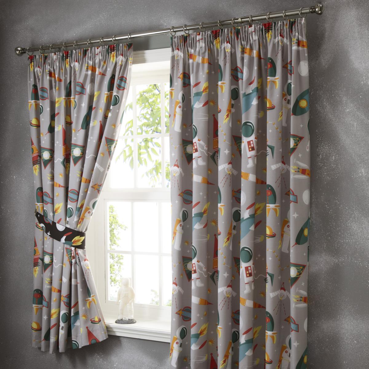 Spaceman Pencil Pleat Lined Curtains - Grey / 183cm