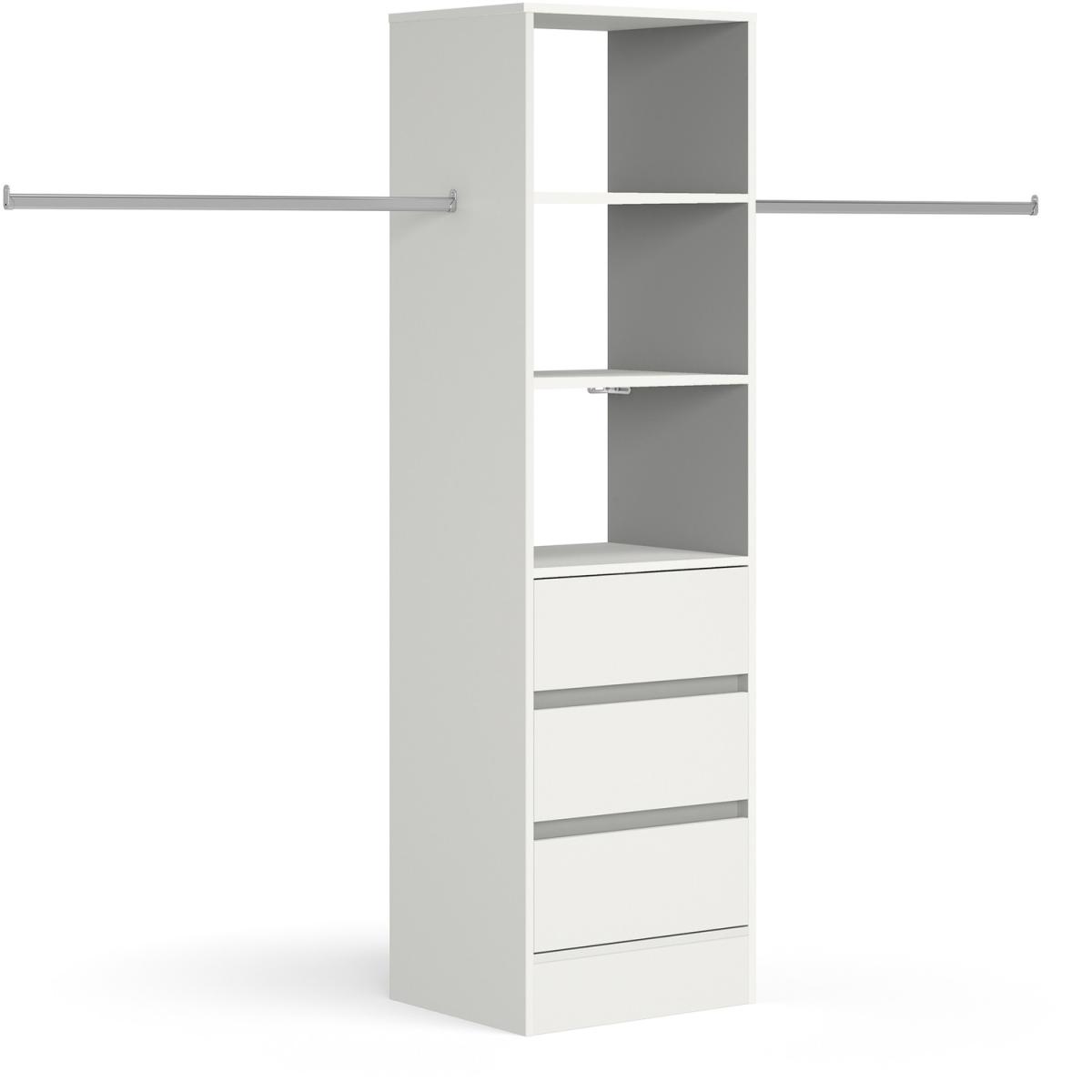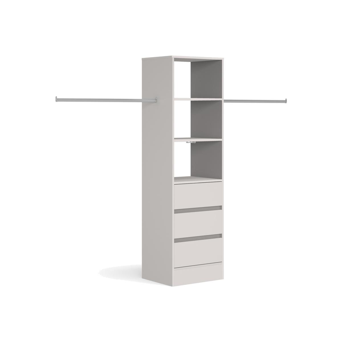 The Spacepro Tower Unit has a sturdy 18mm construction and soft close enabled drawers that can be used as a standalone unit or as a wardrobe interior. An oversized hanger bar is provided for you to cut down and create your ideal storage solution. Combine with Spacepro's Tower unit without drawers or Standard Shelf Kits to maximise your storage potential.