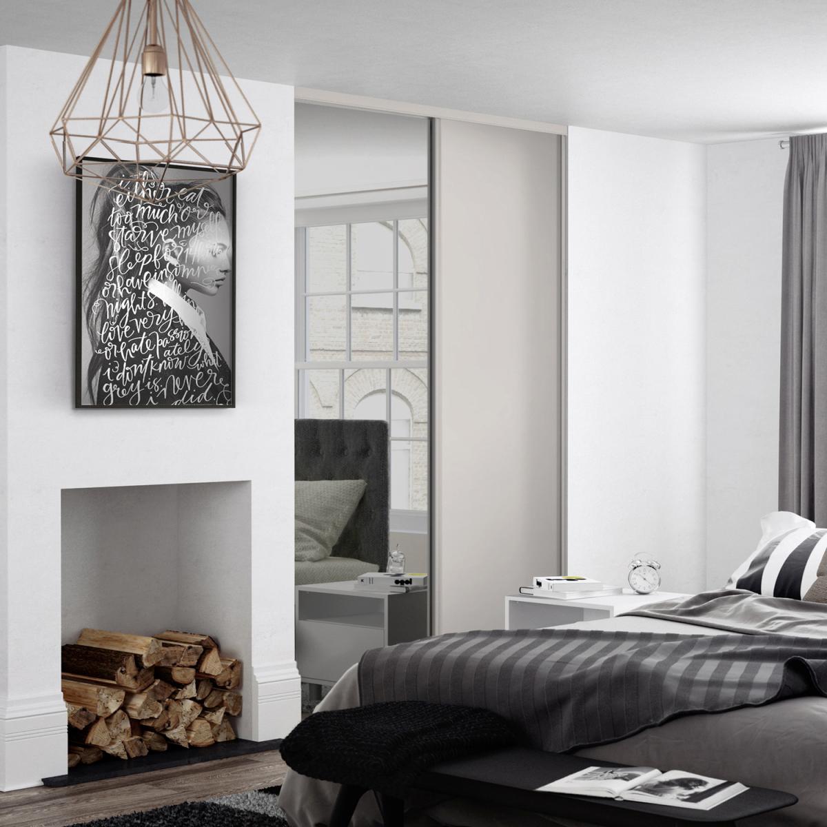 Spacepro Dove Grey Frame & Panel With Mirrored Classic Sliding Door Kit - Dove Grey/Mirror / 1793mm / 2